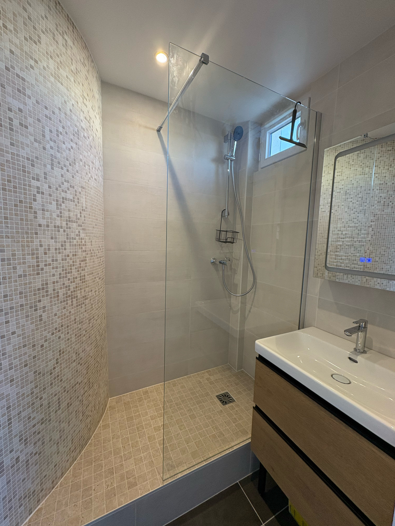 L'appartement vient tout juste d'être entièrement rénové, il se compose d'une entrée, wc séparé, buanderie, chambre avec sdb privative, salon avec cuisine ouverte équipée. Le charme de l'ancien rénové avec des beaux matérieaux.