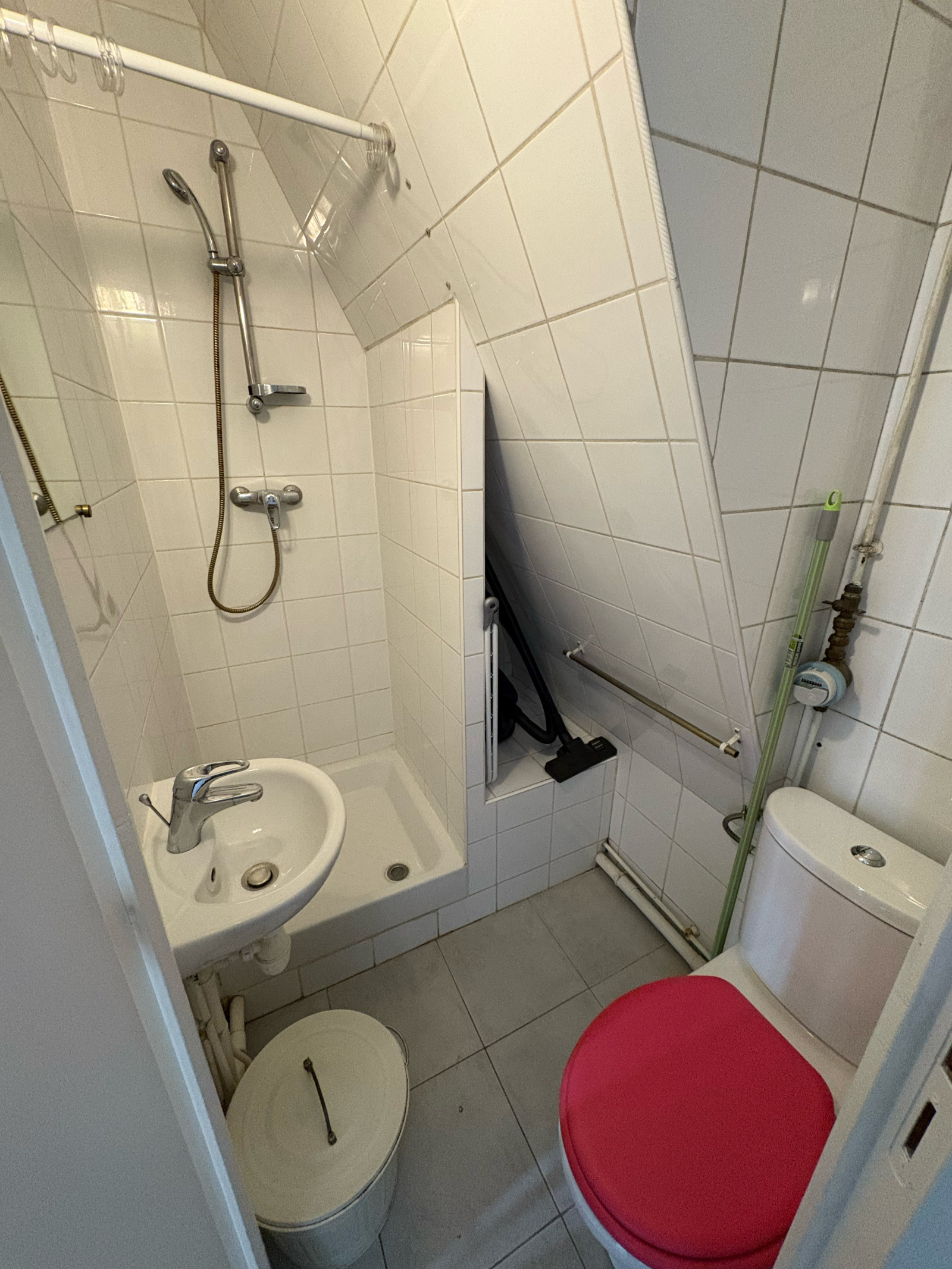 Situé au 8eme et dernier étage, accessible par ascenseur, ce studio offre une salle de douche avec vrai WC et un espace de vie avec kitchenette.