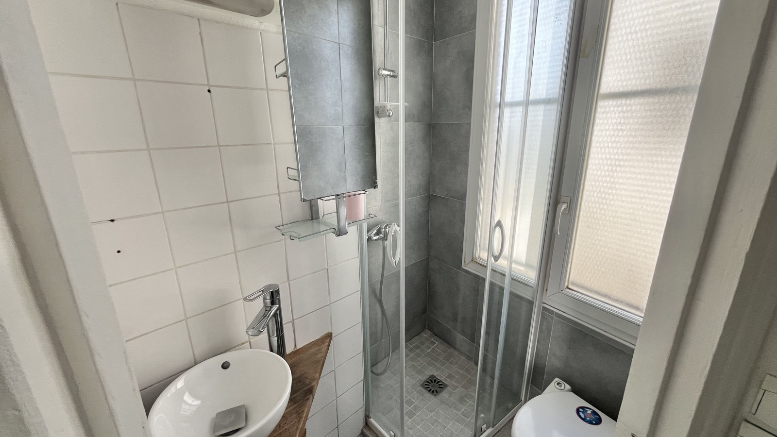 La pièce à vivre se compose d'une kitchenette aménagée et équipée d'un frigo et d'une plaque électrique. La salle d'eau est fonctionnelle et dispose d'un WC sanibroyeur.