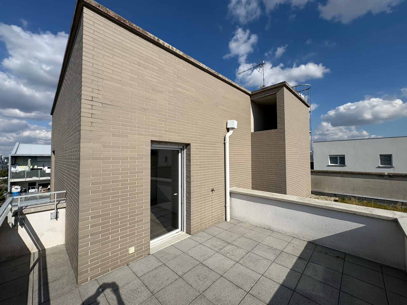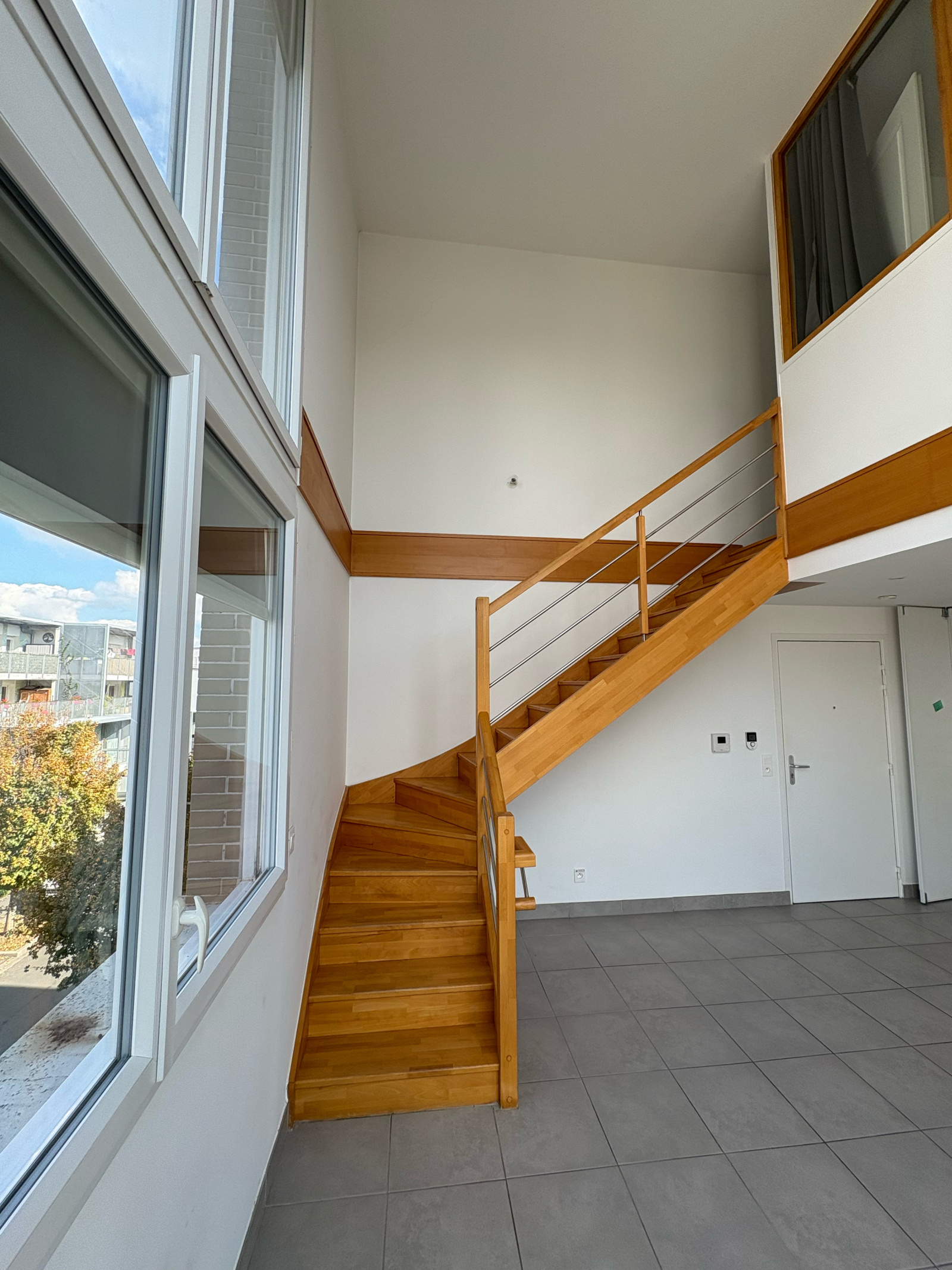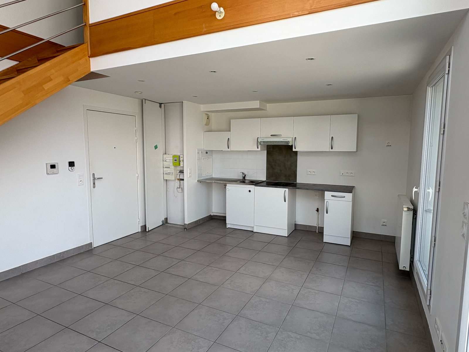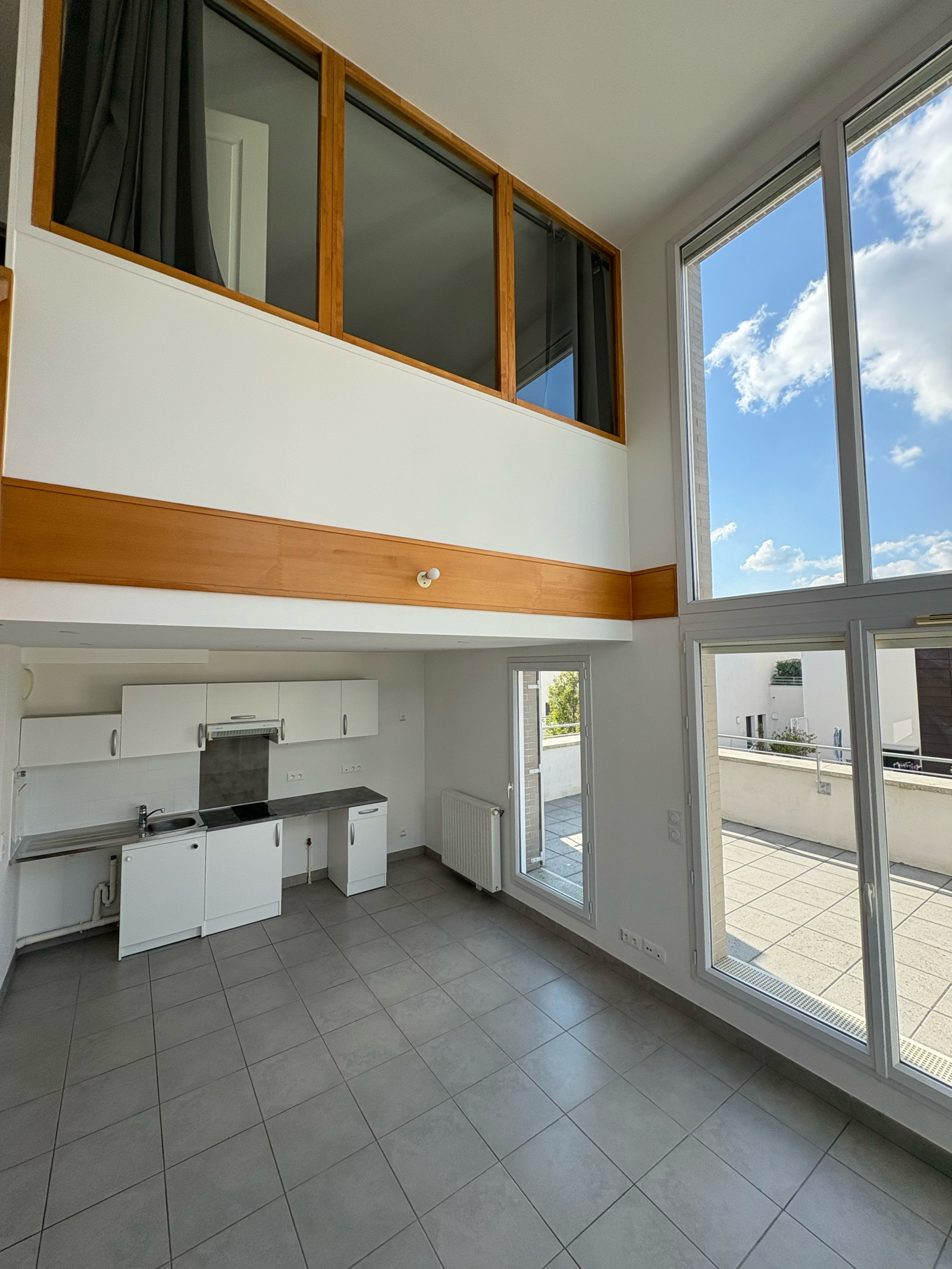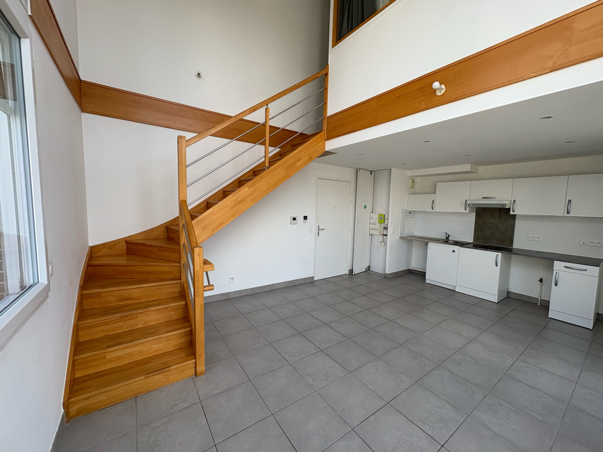 L’entrée de ce duplex s’effectue sur un espace de vie type « open-space », séjour-cuisine, donnant sur une terrasse de 17m².