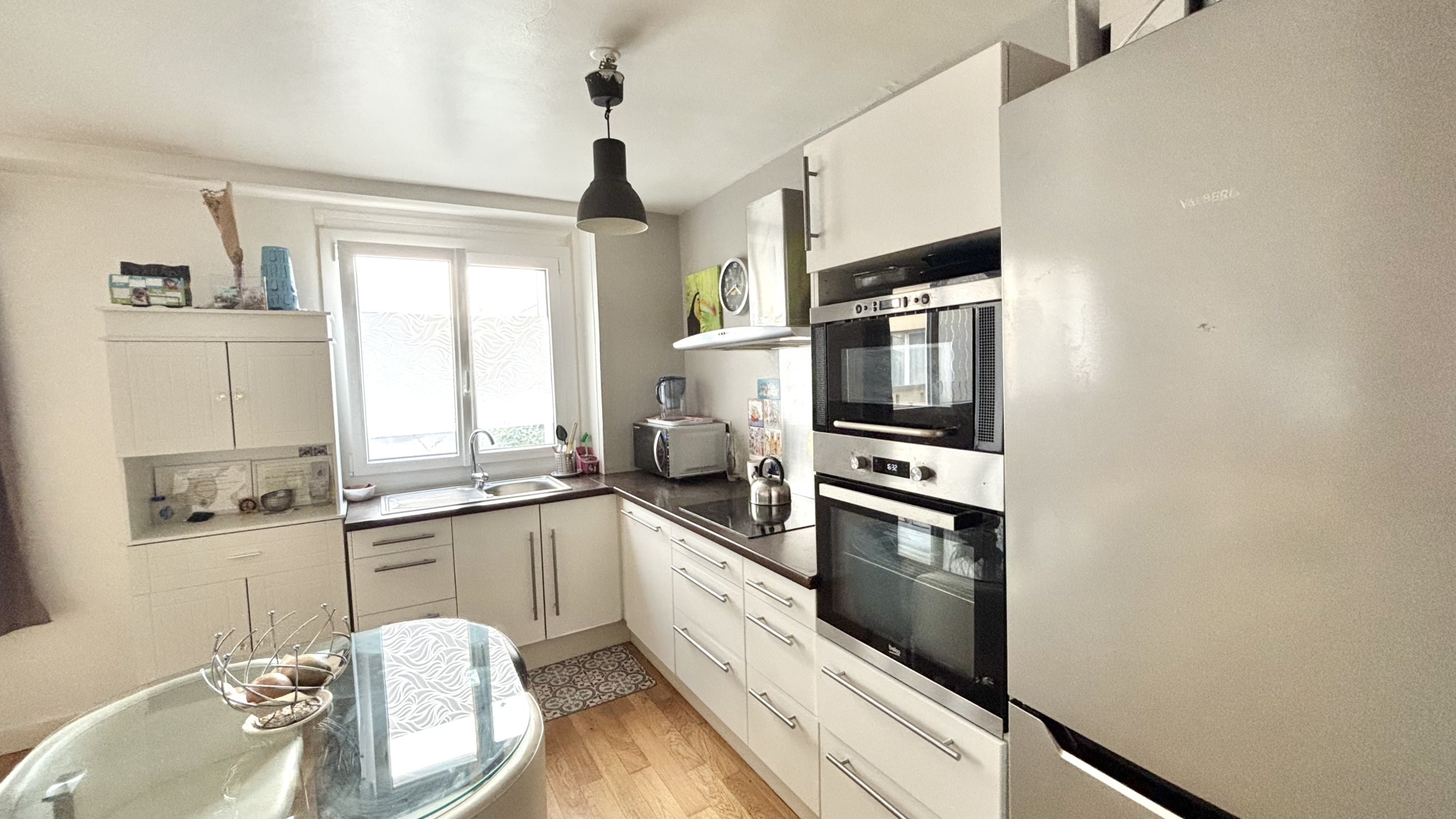 Une entrée avec bureau s'ouvre sur une pièce à vivre de 30m² composé d'une cuisine dinatoire toute équipée et d'une partie séjour.