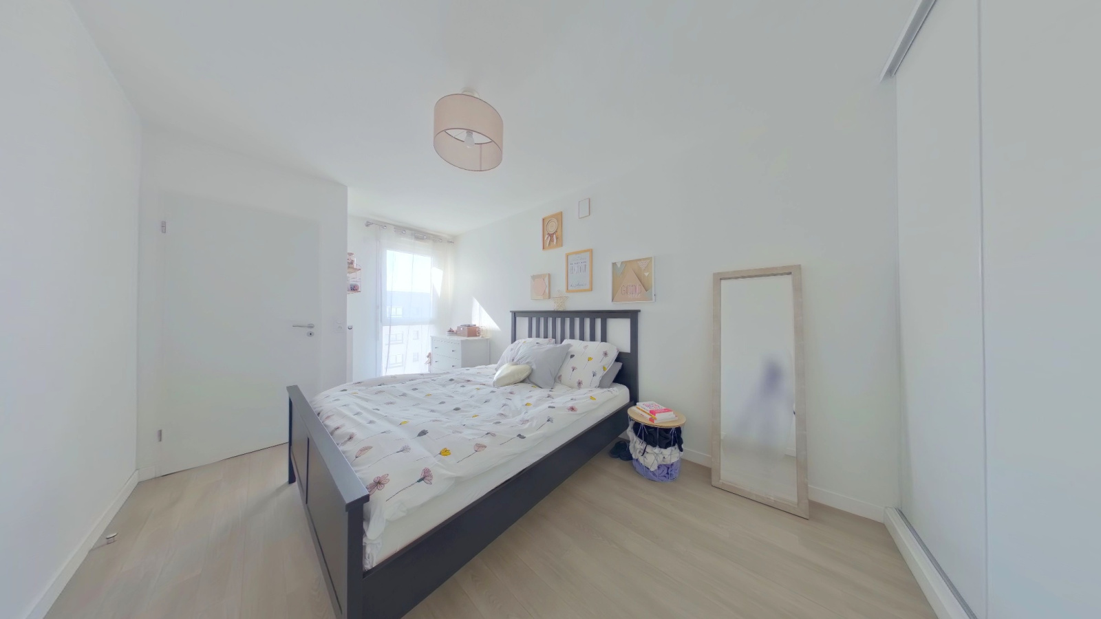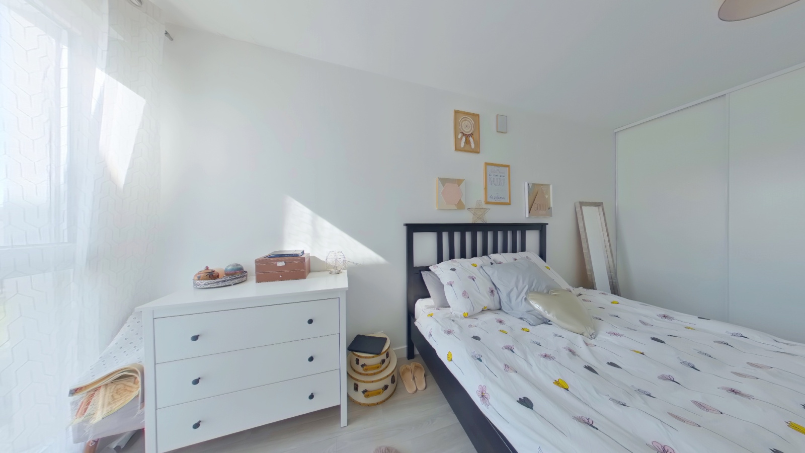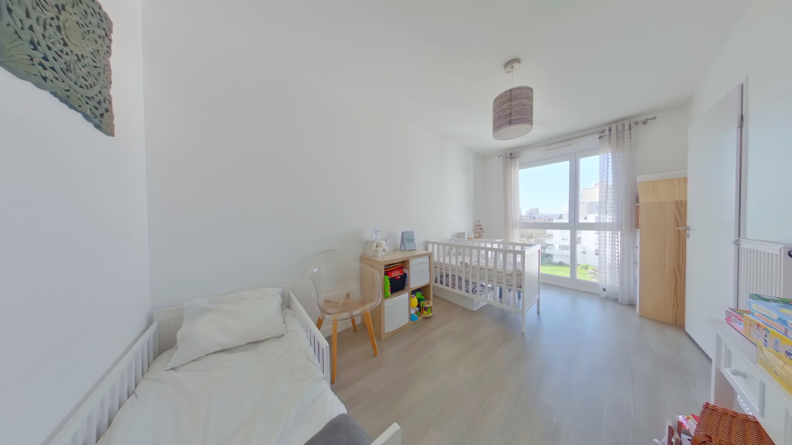 Côté nuit, d’un côté une chambre de 13,5m² avec un grand placard et sa salle de bain attenante avec toilette, de l’autre une chambre de 11m² avec sa salle d’eau privative.