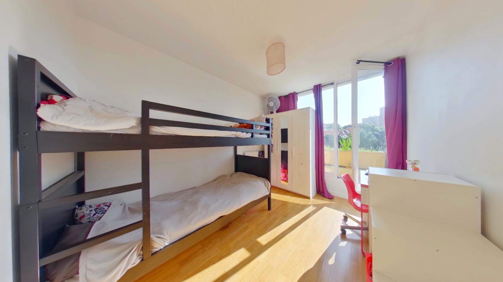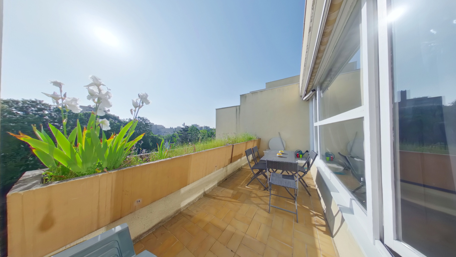 Au 6ème étage, l’accueil se fait par une entrée desservant un double-séjour de 25m² s’ouvrant sur une terrasse de 10m² exposé sud-est.