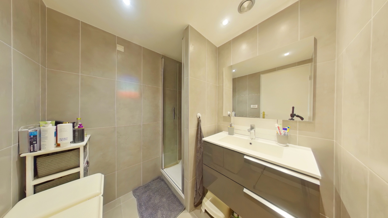 Un couloir avec de grands placards dessert une salle d’eau récemment rénovée, un wc indépendant et 3 chambres dont une avec dressing. Chacune des trois chambres s’ouvrent sur une terrasse communicante de 12m².