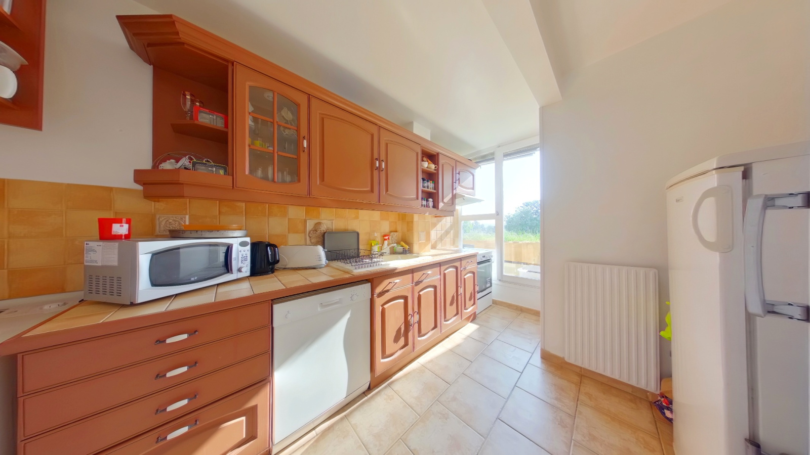 La cuisine aménagée donne également accès à la terrasse et peut-être ouverte entièrement sur le salon pour créer un espace de vie de 35m2.