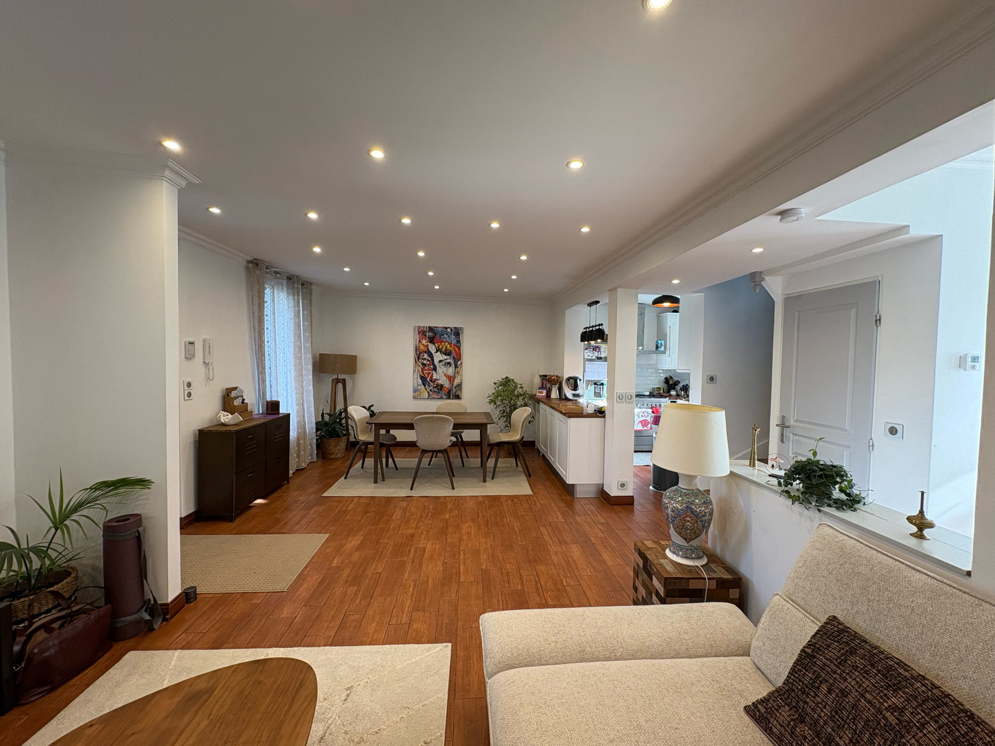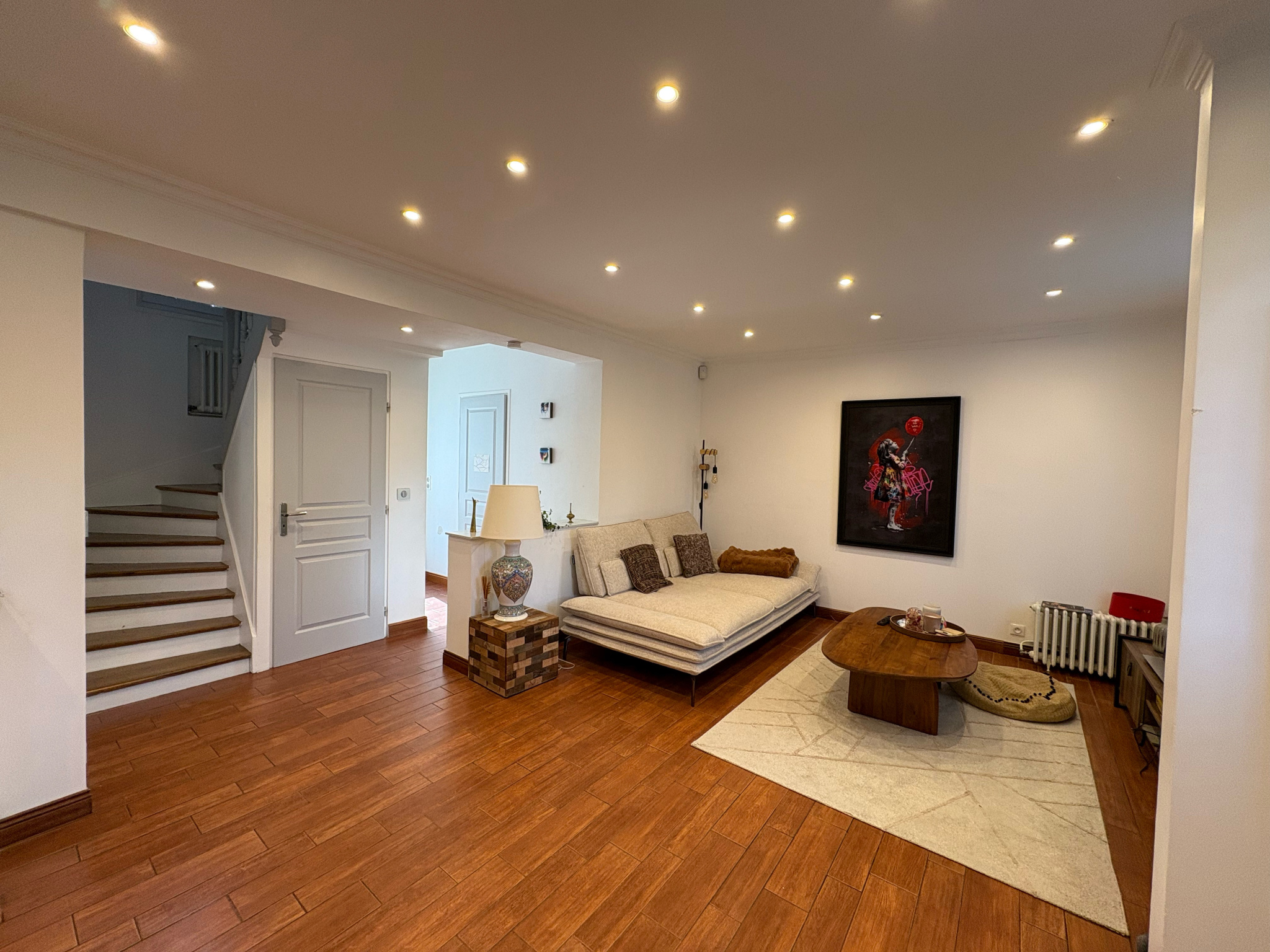 La maison est construite sur un sous-sol total, récemment isolé et aménagé avec une buanderie spacieuse et une belle pièce de 28m² multi-usage, pouvant servir de home cinéma, salle de jeux, chambre d’appoint ou bureau.