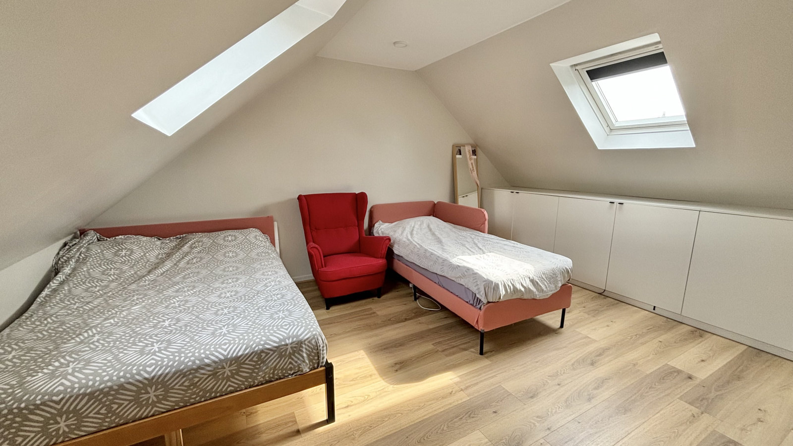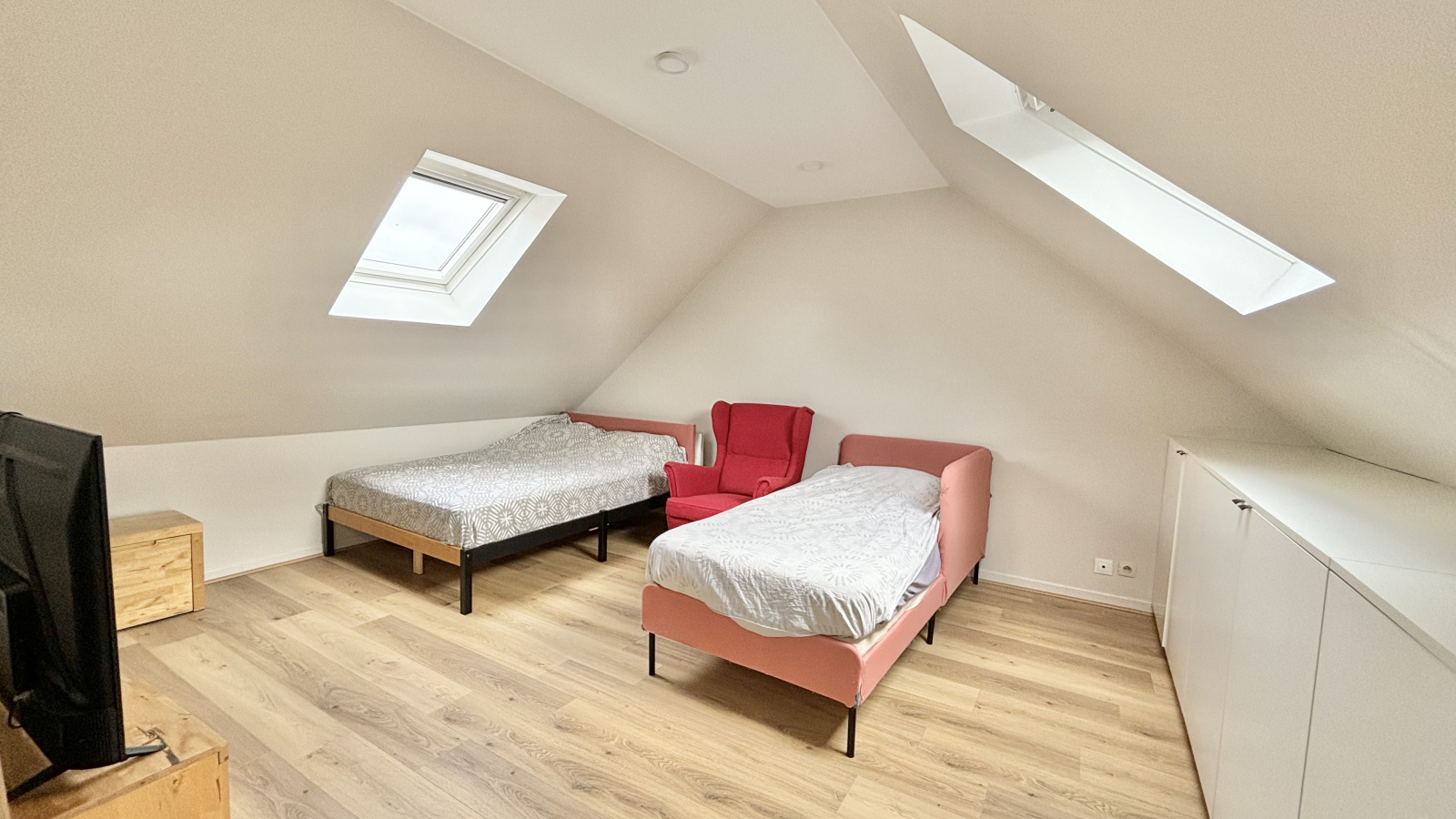 Au 2ème niveau, une grande chambre de plus de 20m² au sol avec un grand dressing et un toilette avec lave-mains.