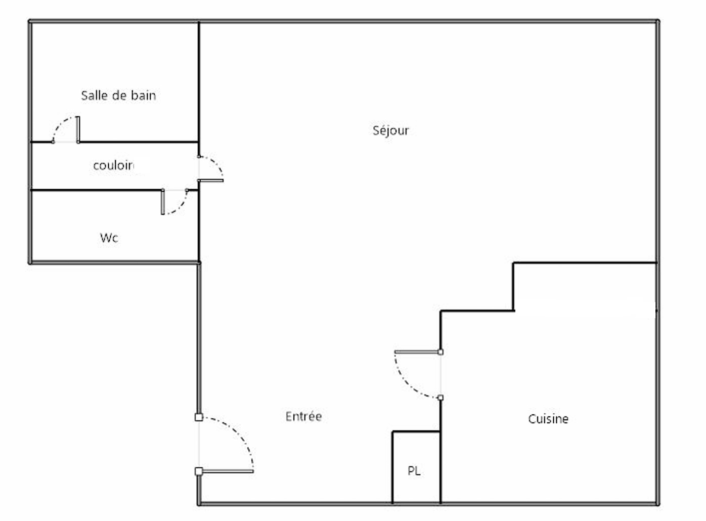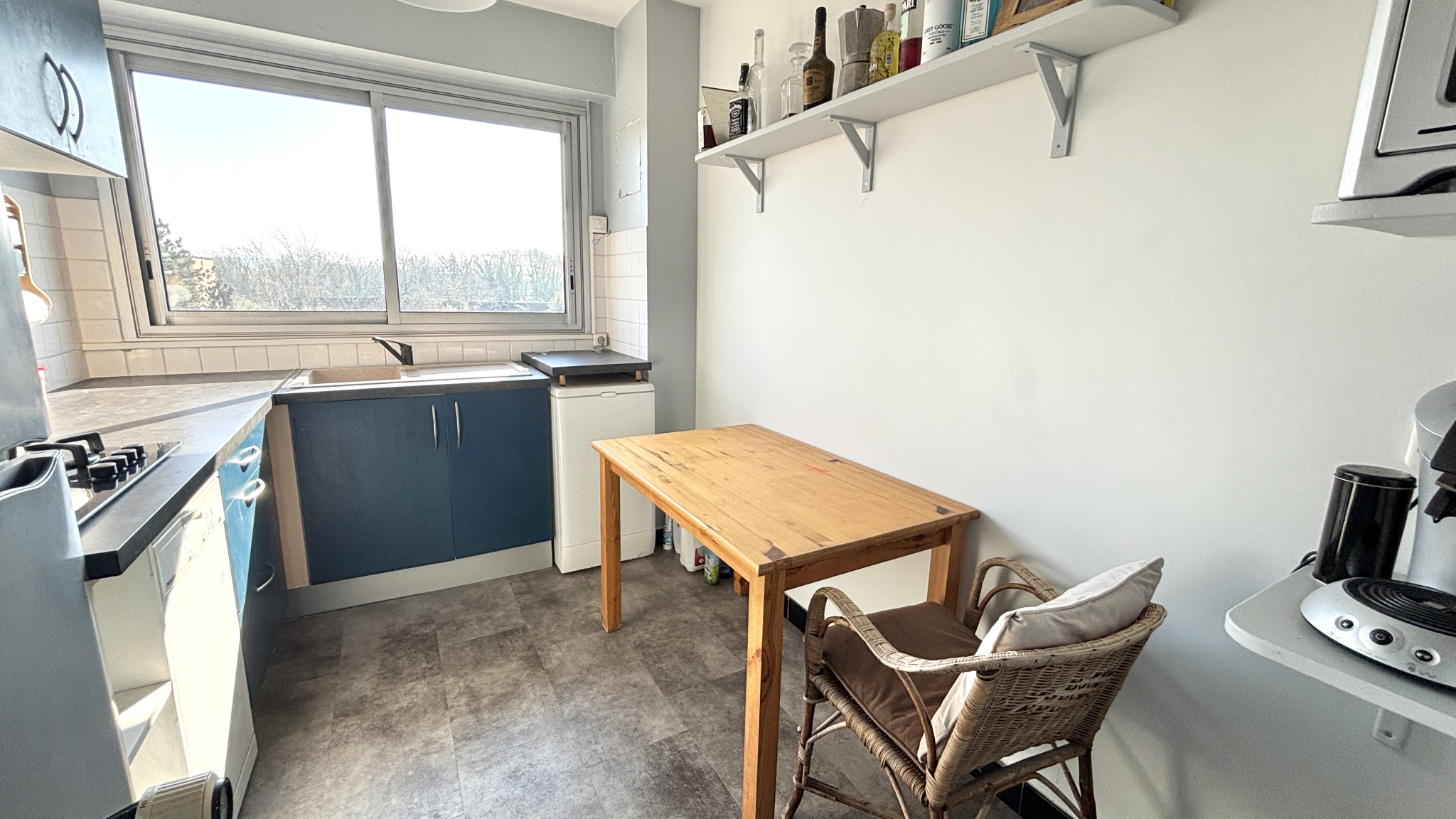 Après quelques agencements, il est possible de créer une chambre de 9m² et de basculer la cuisine dans la pièce à vivre.