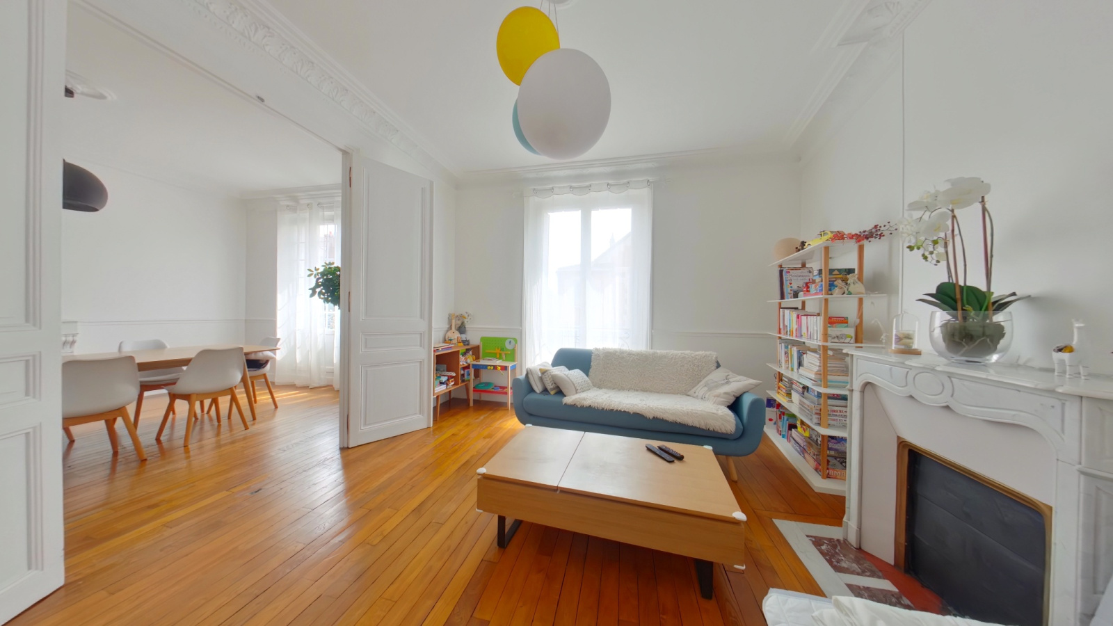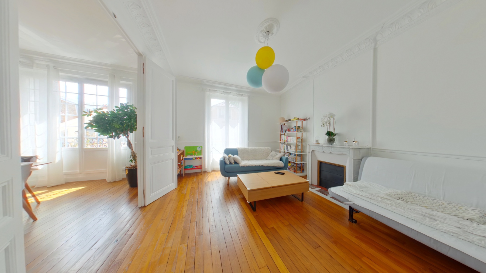 L'appartement, entièrement rénové, est situé au 1er étage sur 4 avec ascenseur d'un bel immeuble ancien et dispose du charme associé (moulures, parquet, cheminées, belle hauteur sous plafond). Il se compose d'un double séjour de 37m², d'une cuisine séparée intégralement équipée, de deux chambres sur cour toutes deux équipées d’un dressing, d'une salle d'eau et de toilettes séparées. Il est possible de configurer l'appartement avec 3 chambres très simplement.