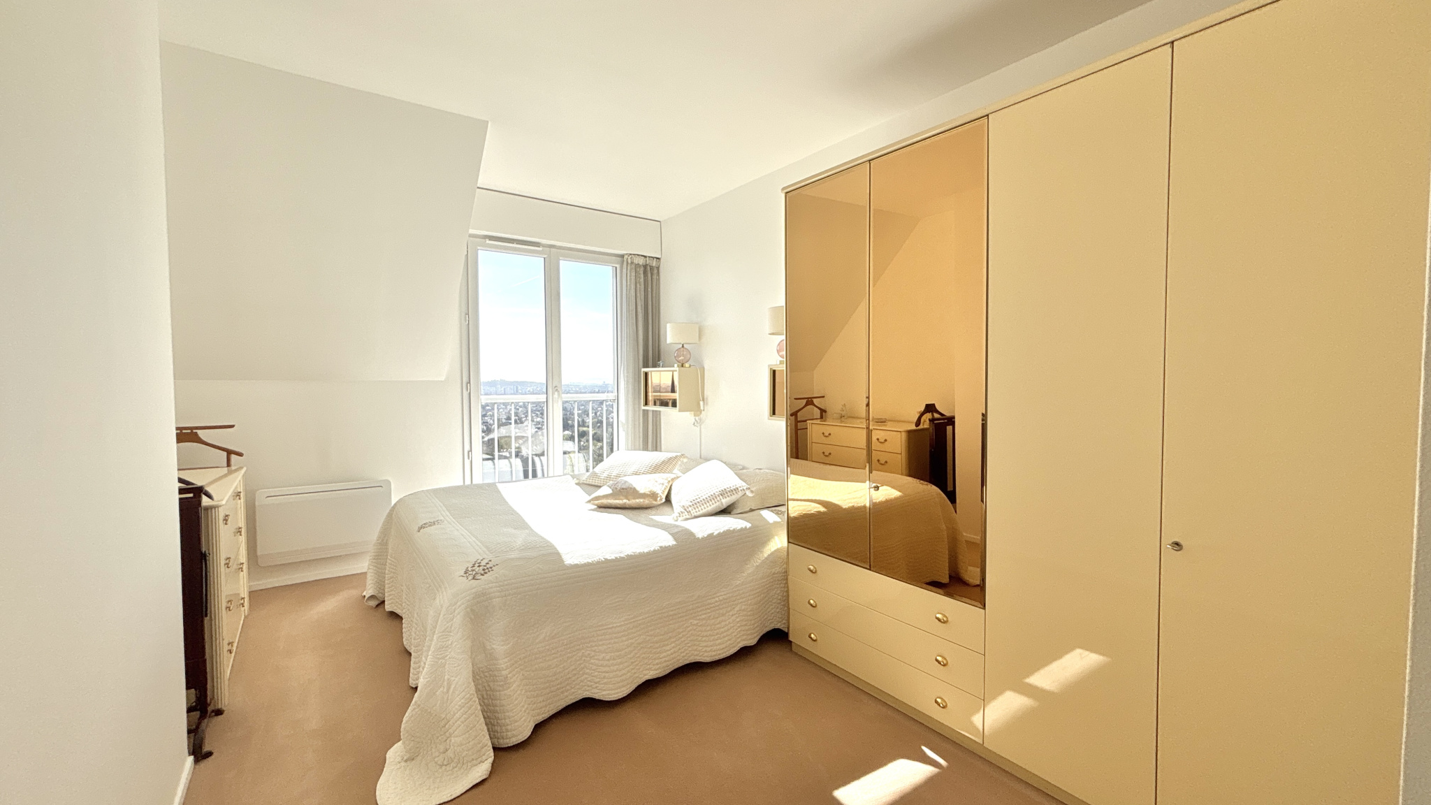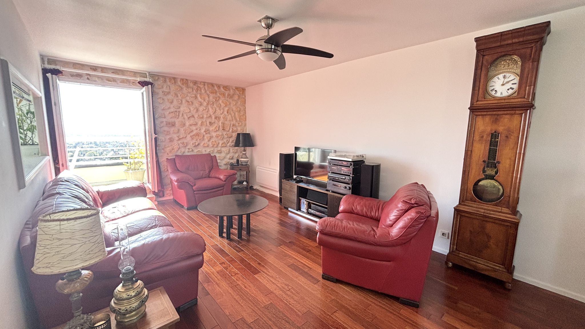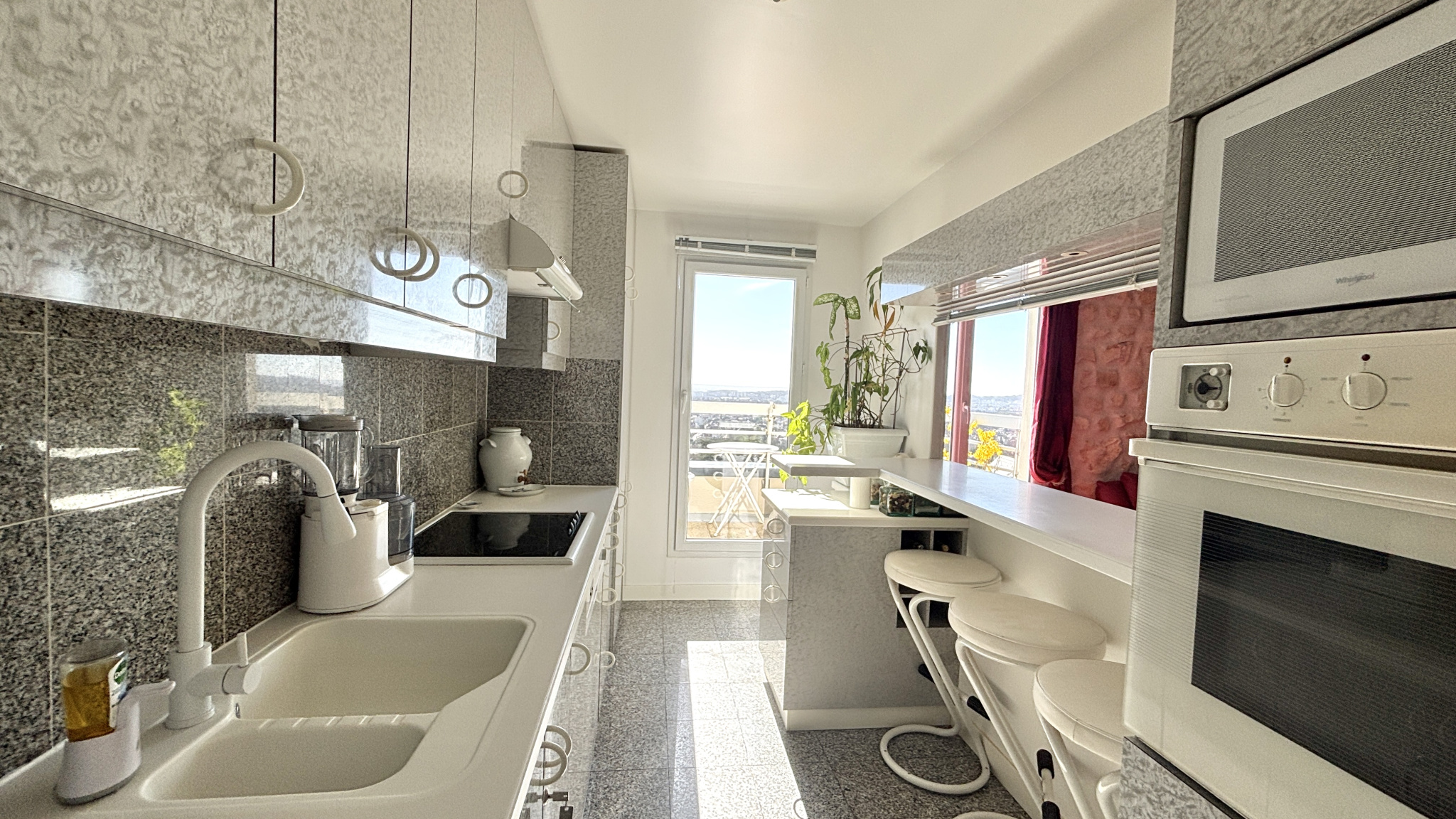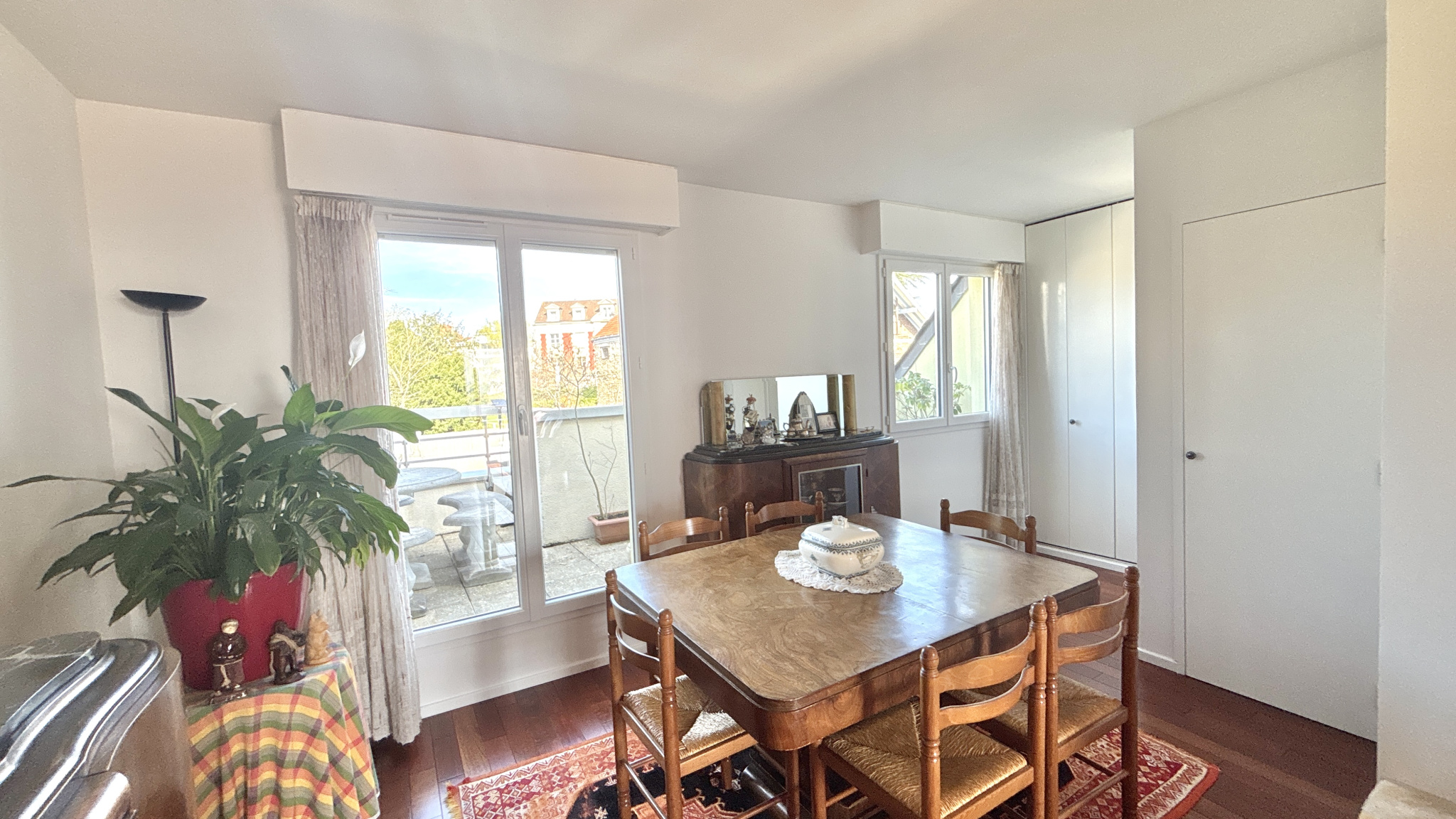 Situé au 5ème et dernier étage avec ascenseur d'une résidence de 1987 ravalée en 2025, ce duplex de 82m² (90m² au sol) se compose d’une entrée avec placard, une cuisine aménagée et équipée ouverte sur le séjour traversant de 32m² s'ouvrant de part et d'autre sur des terrasses dont l'une exposée sud-ouest avec une vue panoramique sur Paris et la collégiale de Montmorency.