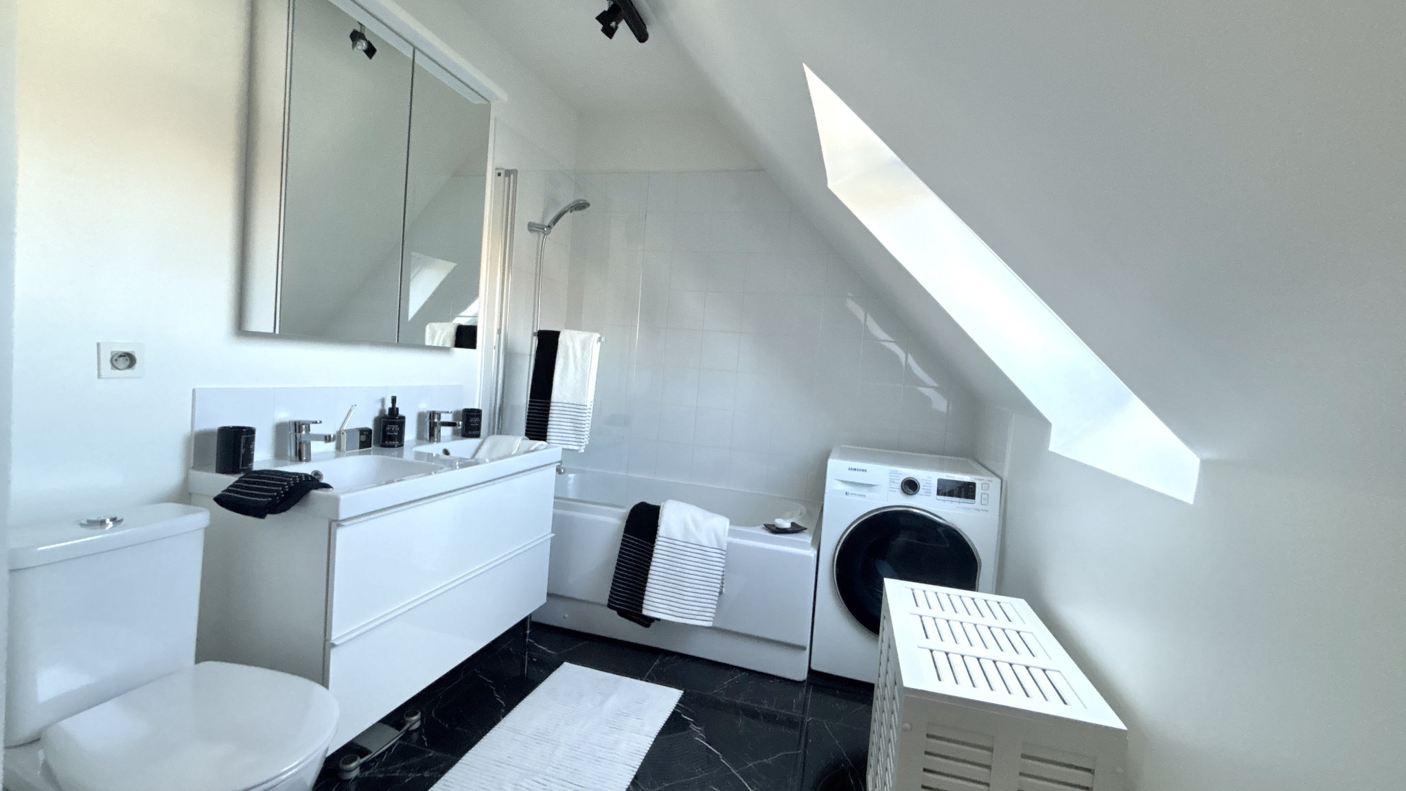 Un toilette avec lave-main complète ce niveau. Il est possible de créer une 3ème chambre avec placard (partie salle à manger).