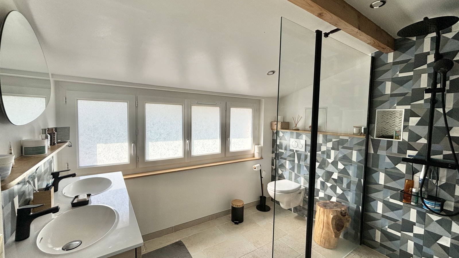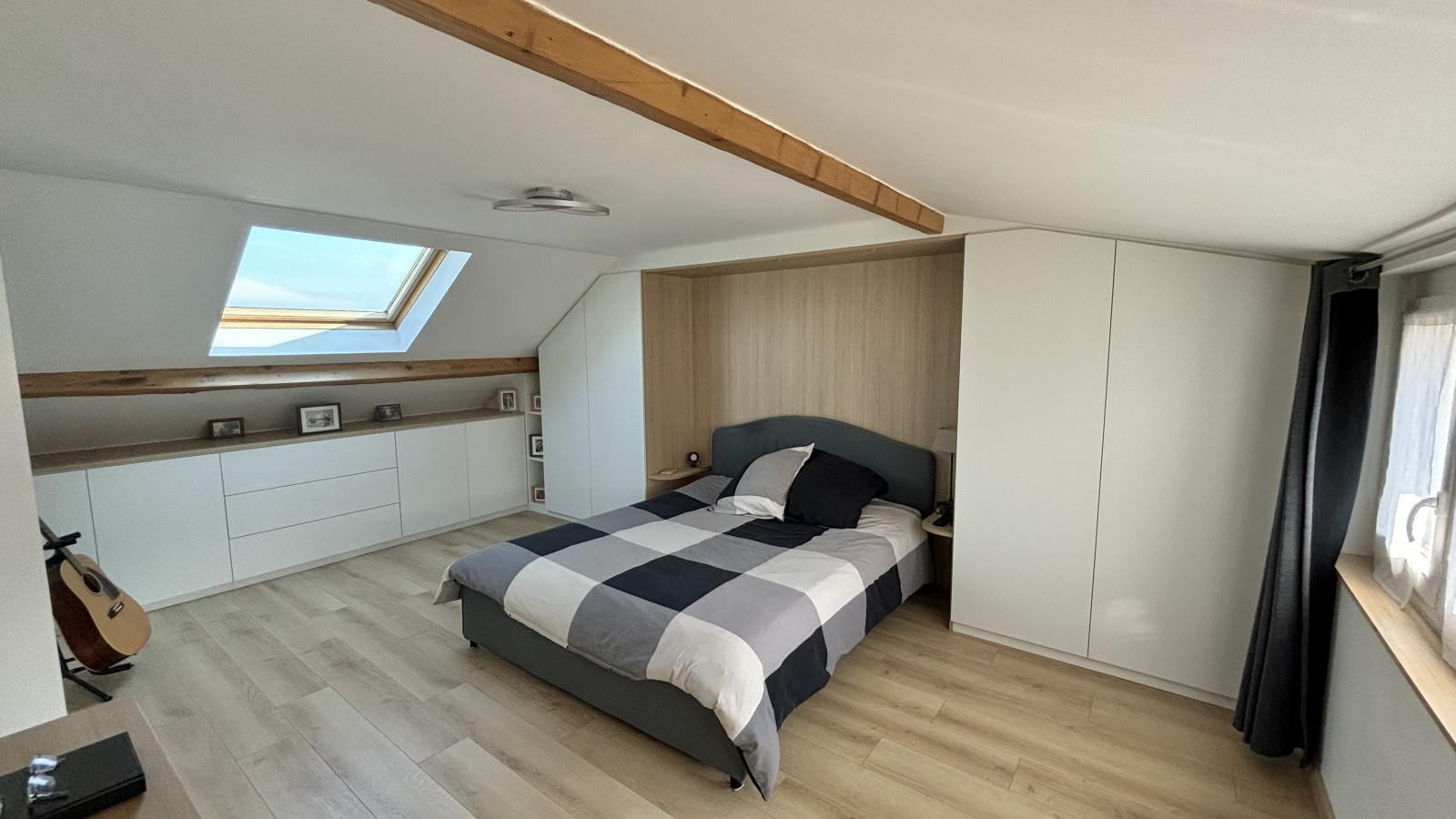 Au 2ème niveau, une suite parentale de plus de 20m² au sol avec un dressing sur mesure de part et d'autre du lit, une salle d'eau avec toilette et un bureau sur l'espace palier.