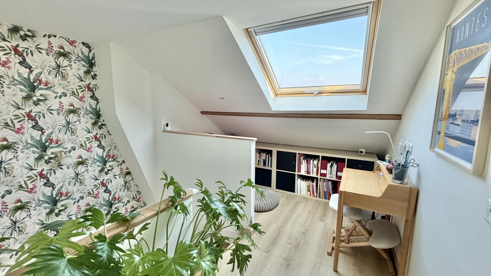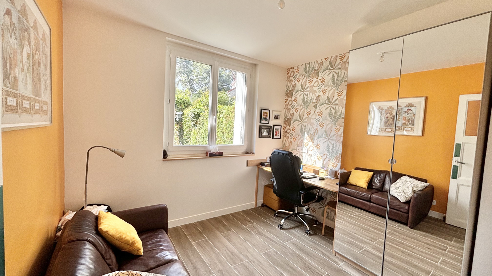 Le rez de chaussée est complété par une chambre (ou bureau), un toilette et un accès au sous-sol. Le bureau peut facilement s'ouvrir afin d'offrir une pièce à vivre de plus de 40m².