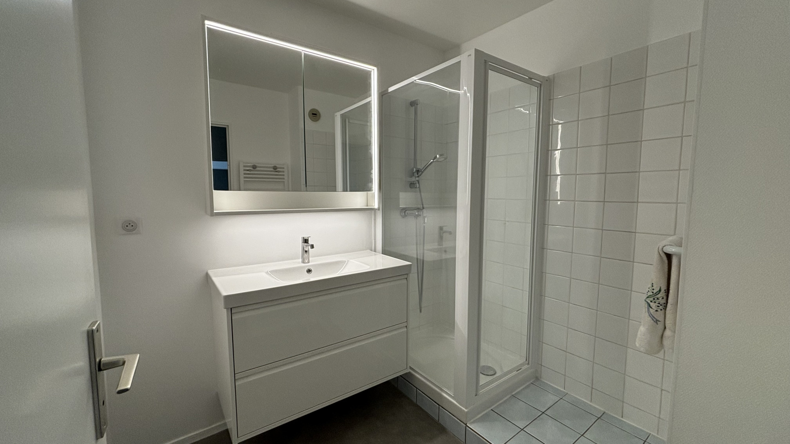 Situé au 1er étage avec ascenseur, il se compose d'une entrée, un salon de 18m2 avec sa cuisine équipée attenante qui peut s'ouvrir sur le salon afin de créer une pièce à vivre de près de 30m². L'ensemble s'ouvre sur un balcon exposé Est sur jardin.
