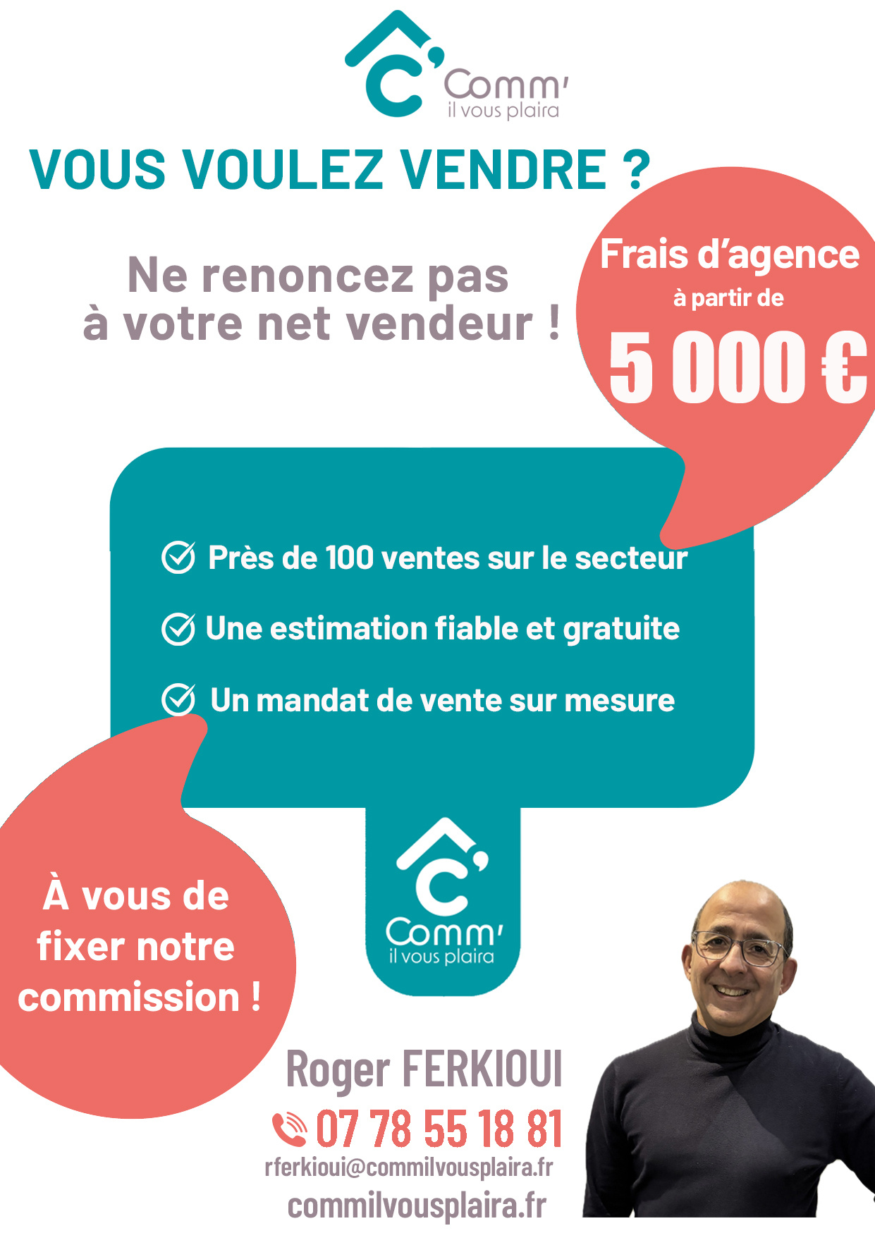Pour une visite ou plus de précisions, contactez Roger Ferkioui de l’agence Comm’ il vous plaira au 07 78 55 18 81