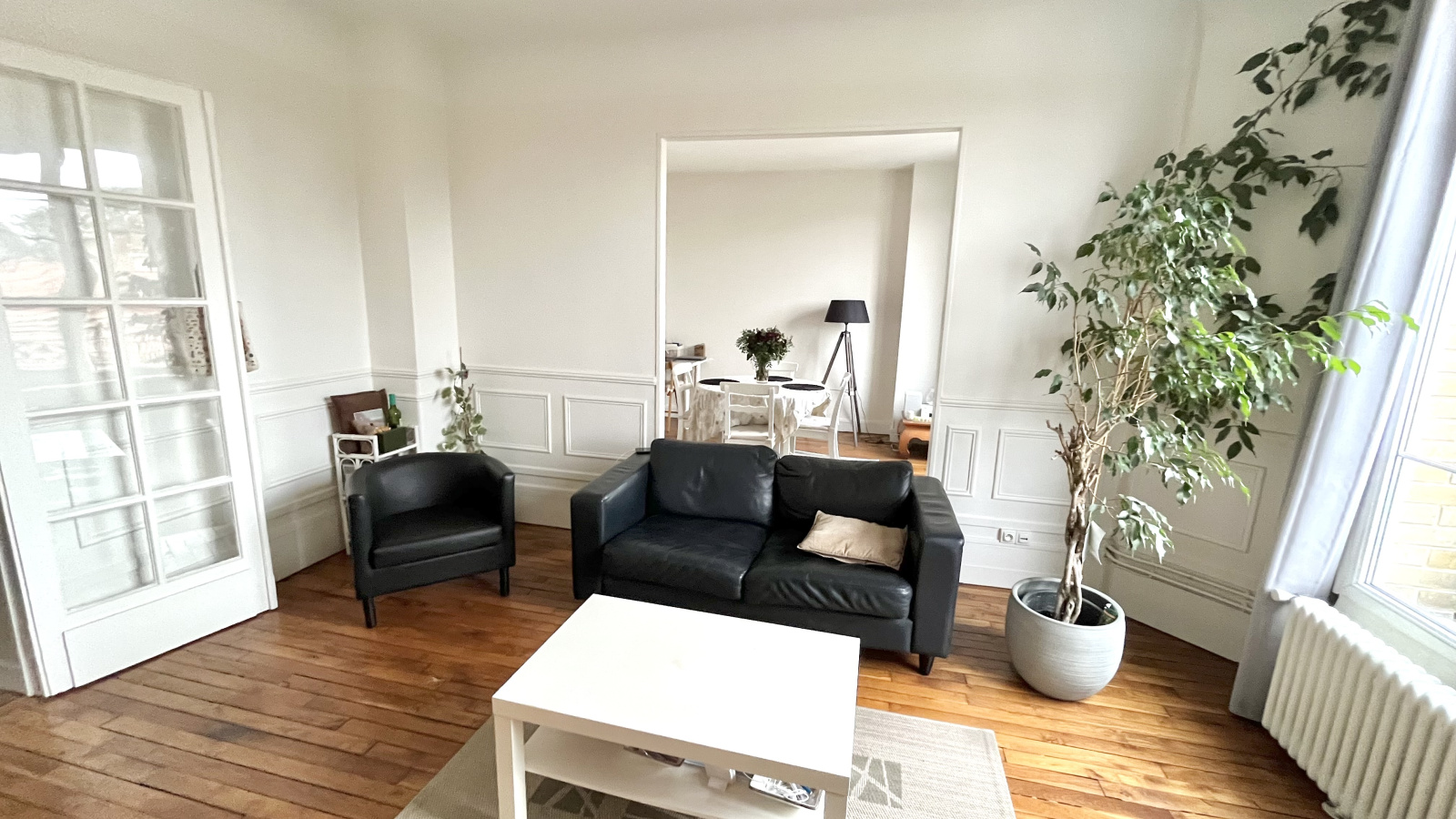 A 5mn à pied de la gare Ermont-Eaubonne, au sein d’un bel immeuble des années 1930, au 2ème étage sur 3 sans ascenseur, ce grand F3 est actuellement composé d'un double séjour (possibilité de créer une 2ème chambre), d'une cuisine indépendante, aménagée et équipée, d'une salle d'eau avec fenêtre, d'un toilette indépendant, d'une chambre donnant sur le jardin partagé de la copropriété et de nombreux espaces de rangements. Sa distribution en étoile lui confère un charme très élégant.