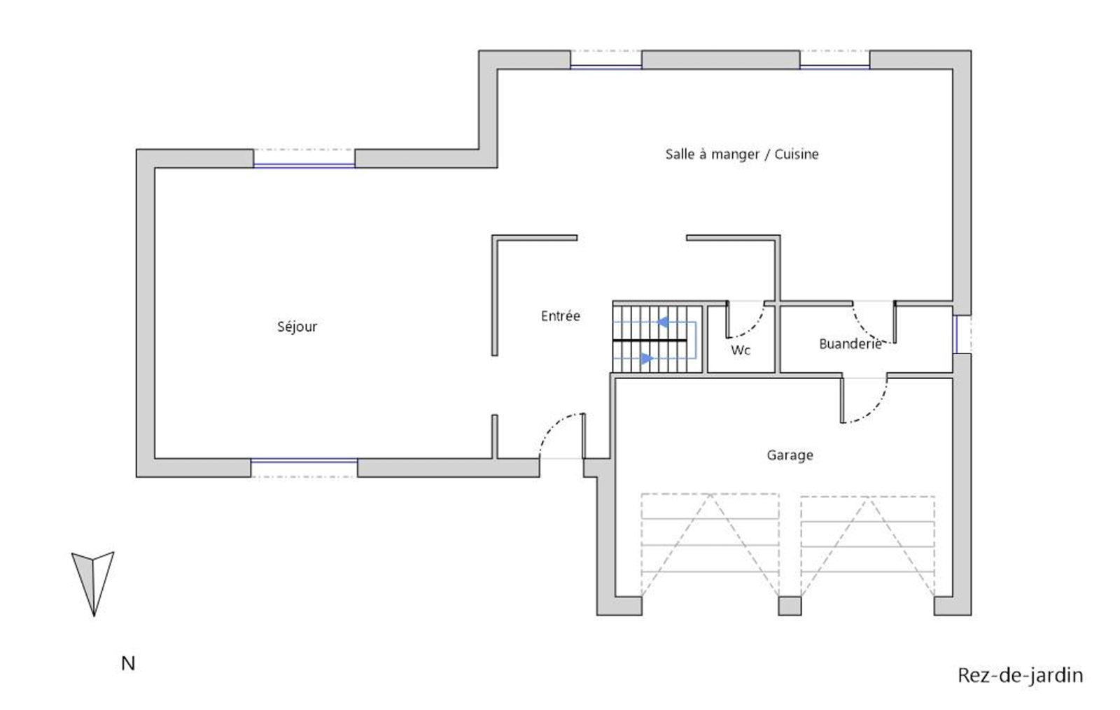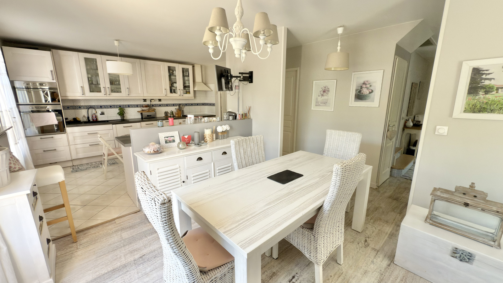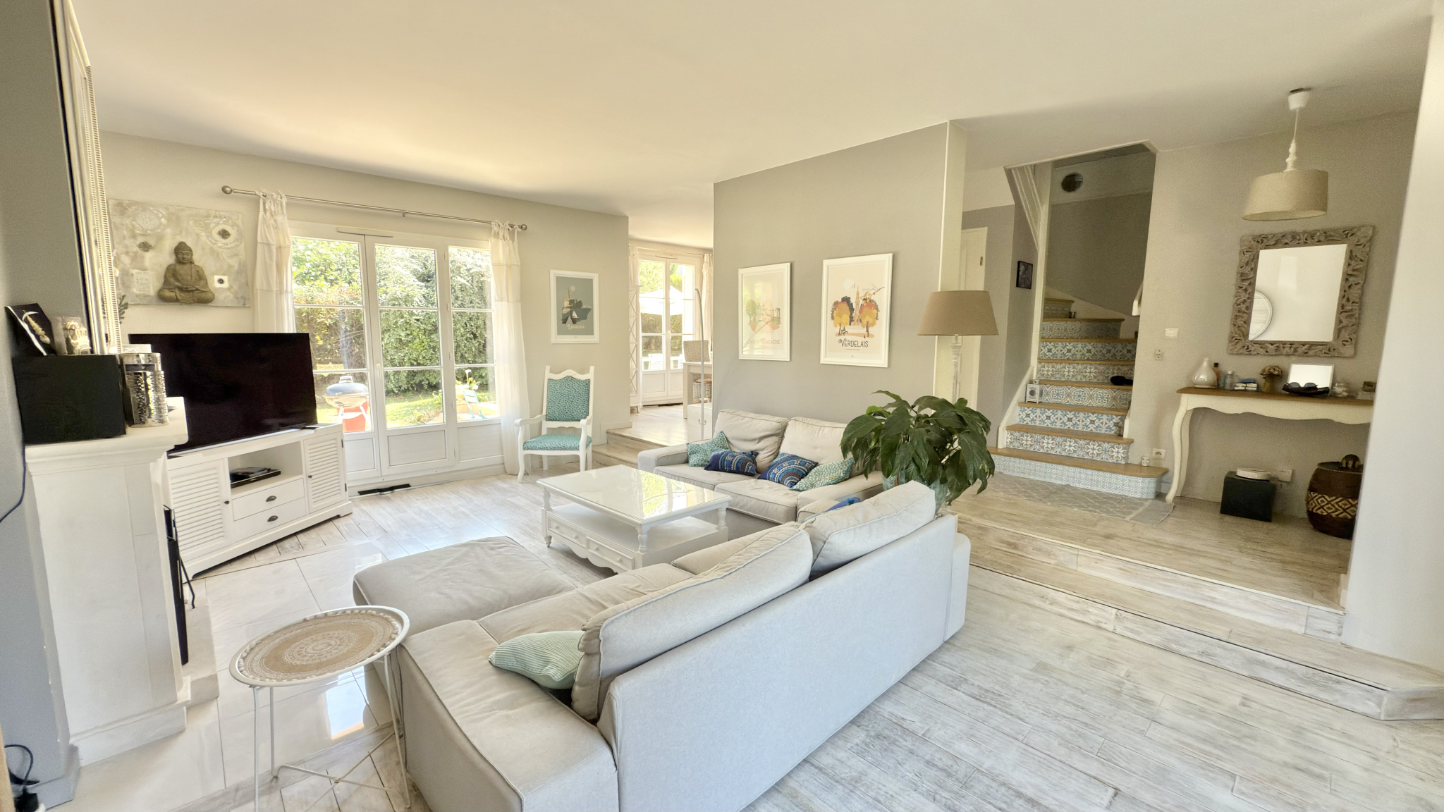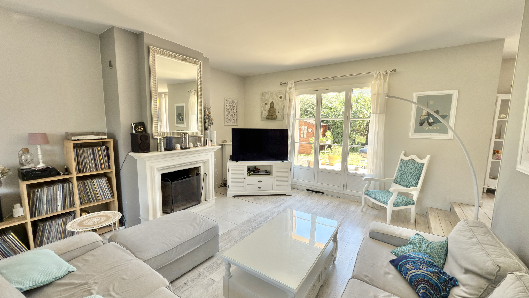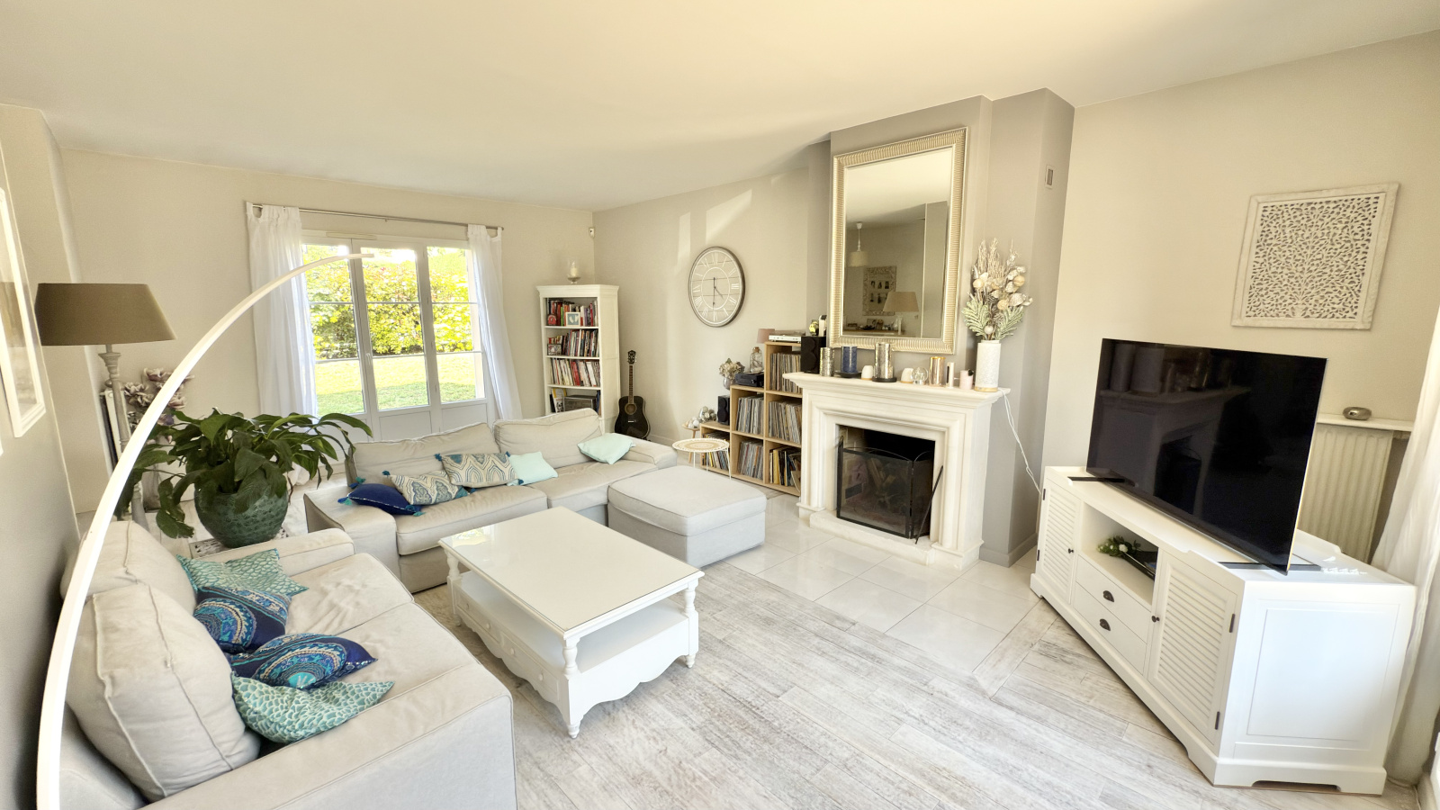 Le rez-de-chaussée s’ouvre sur un vaste espace de vie de plus de 55m², baigné de lumière naturelle et structuré autour d’un séjour, d’une salle à manger et d’une cuisine ouverte, aménagée et équipée. L’ensemble est sublimé par une cheminée à foyer ouvert, et prolongé par une terrasse donnant sur un jardin intime, sans aucun vis-à-vis. Une buanderie attenante à la cuisine et des toilettes séparées viennent compléter ce niveau.