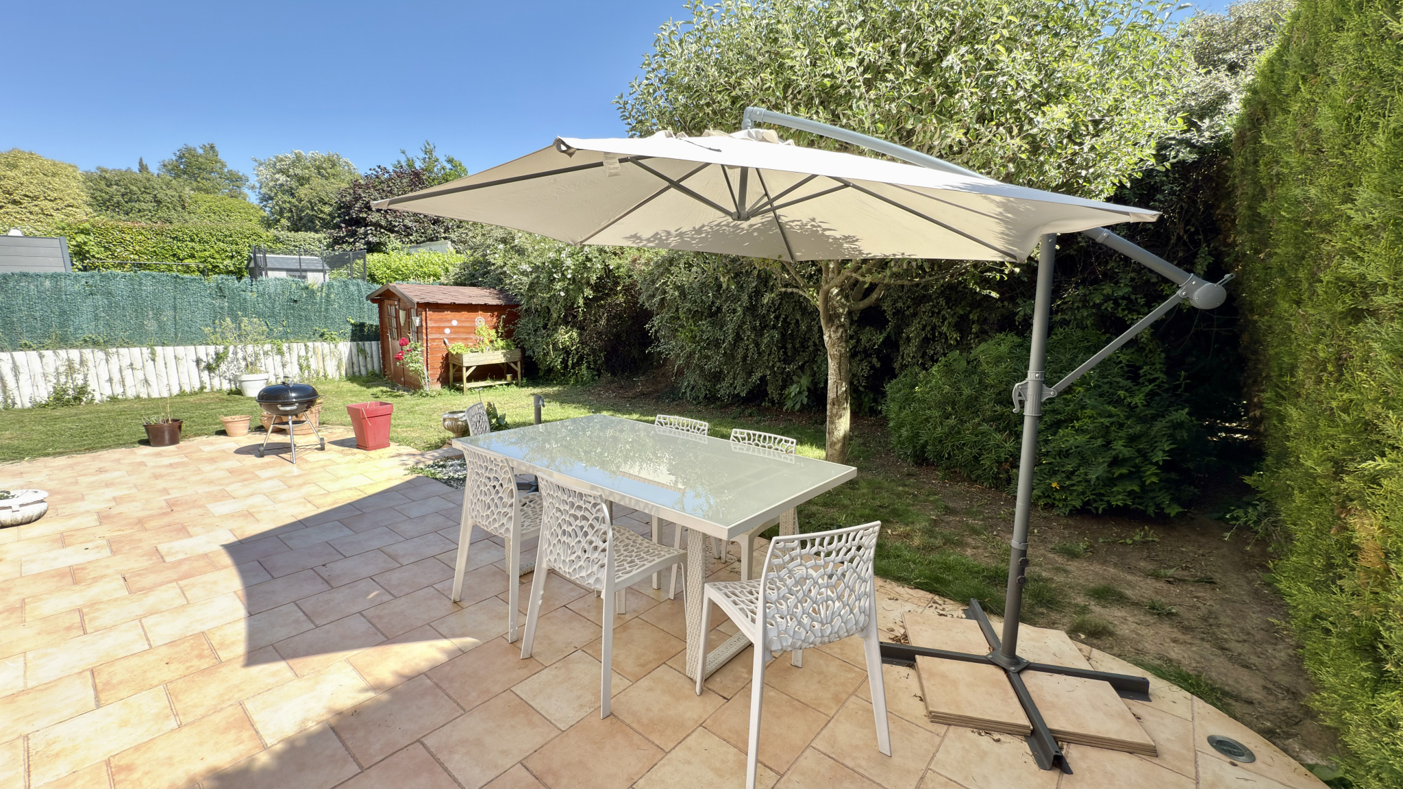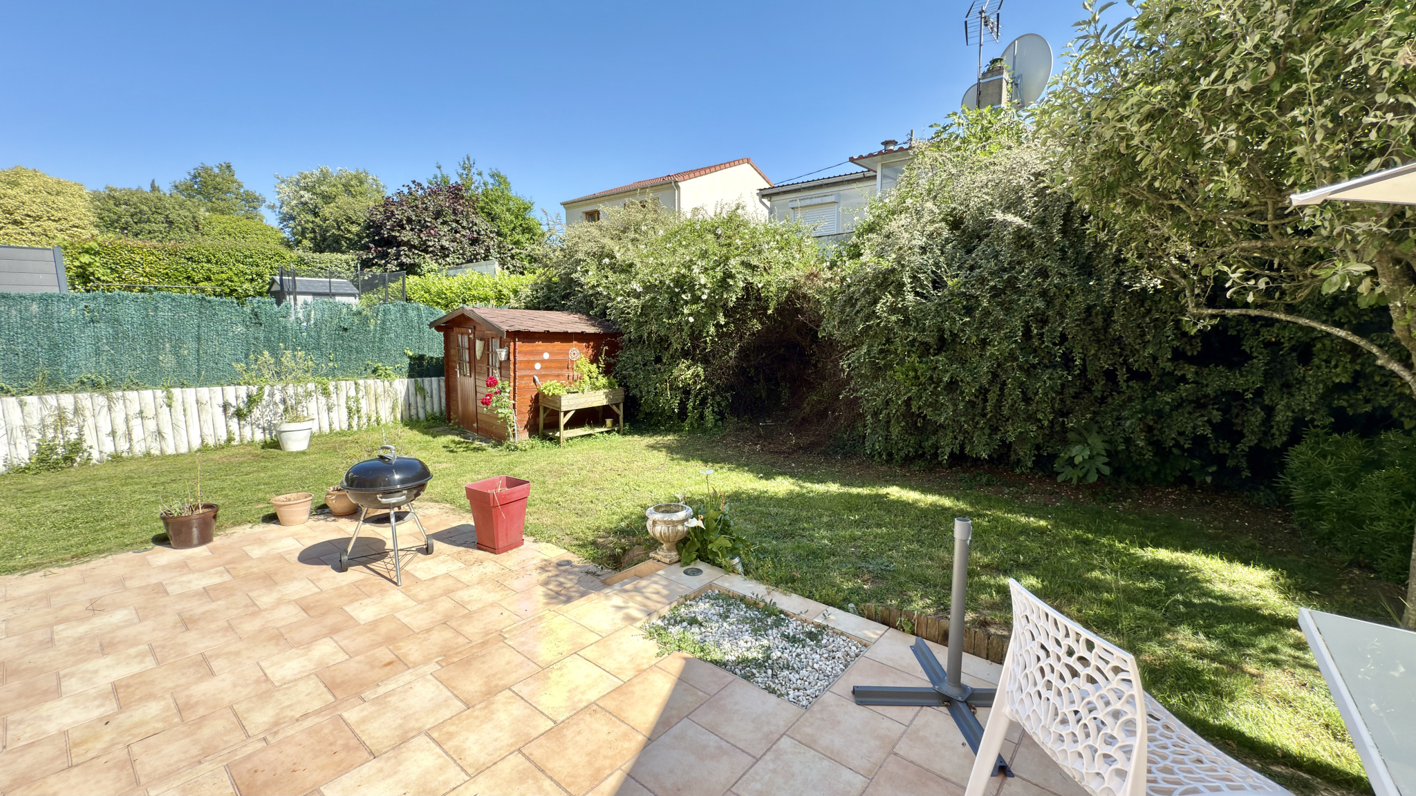 Le double garage de 29m², les deux places de stationnement extérieures, les combles aménageables et un jardin soigneusement entretenu avec cabanon viennent parfaire l’ensemble. Les prestations ont été régulièrement améliorées, notamment la chaudière gaz, les sols et peintures rénovés en 2011, la salle de bains refaite en 2018 et la salle d’eau en 2022. Son classement DPE en C garantit également une bonne performance énergétique.