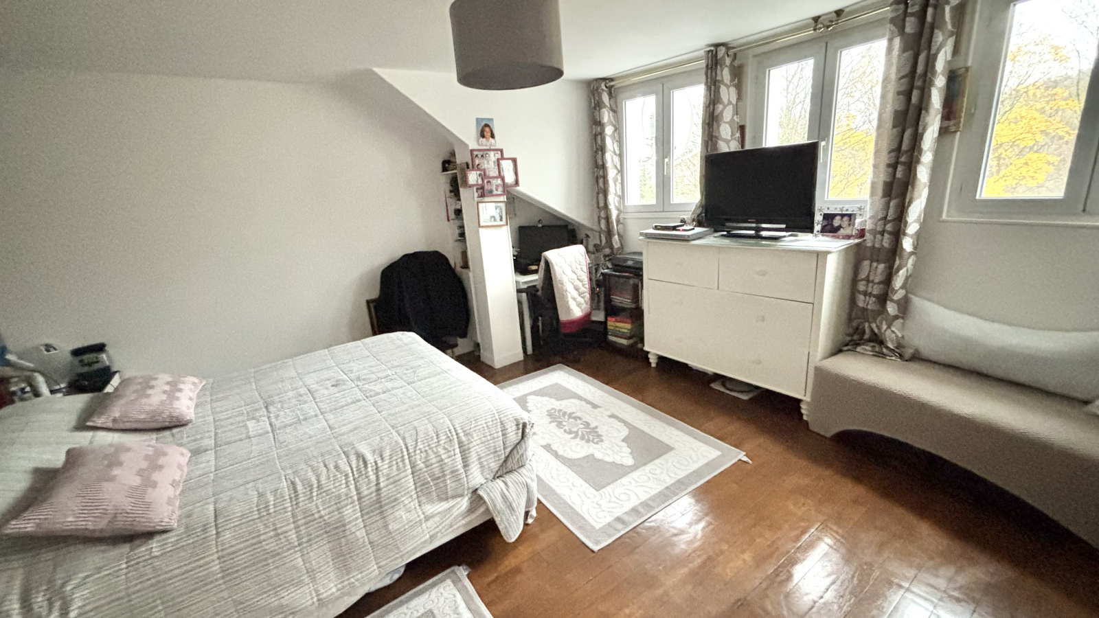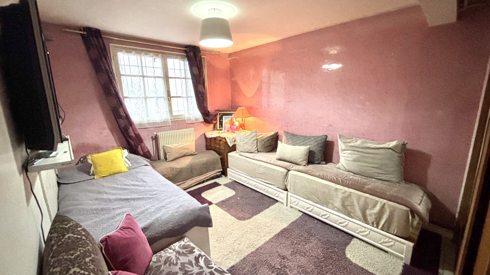 Édifiée sur 3 niveaux en 1973 sur une parcelle de 300m², cette maison se compose de la manière suivante : - Au 1er étage, l'entrée s'ouvre sur un grand séjour/ salle à manger de près de 30m², une cuisine aménagée et équipée, un bureau (ou chambre)&² et un WC indépendant. - Au 2ème étage : un palier dessert trois chambres, une salle de bains avec WC. - Au RDC avec fenêtres : deux chambres dont une chambre avec un accès au jardin, une salle d’eau avec WC, un débarras sous les escaliers, un accès au garage / buanderie / rangement.