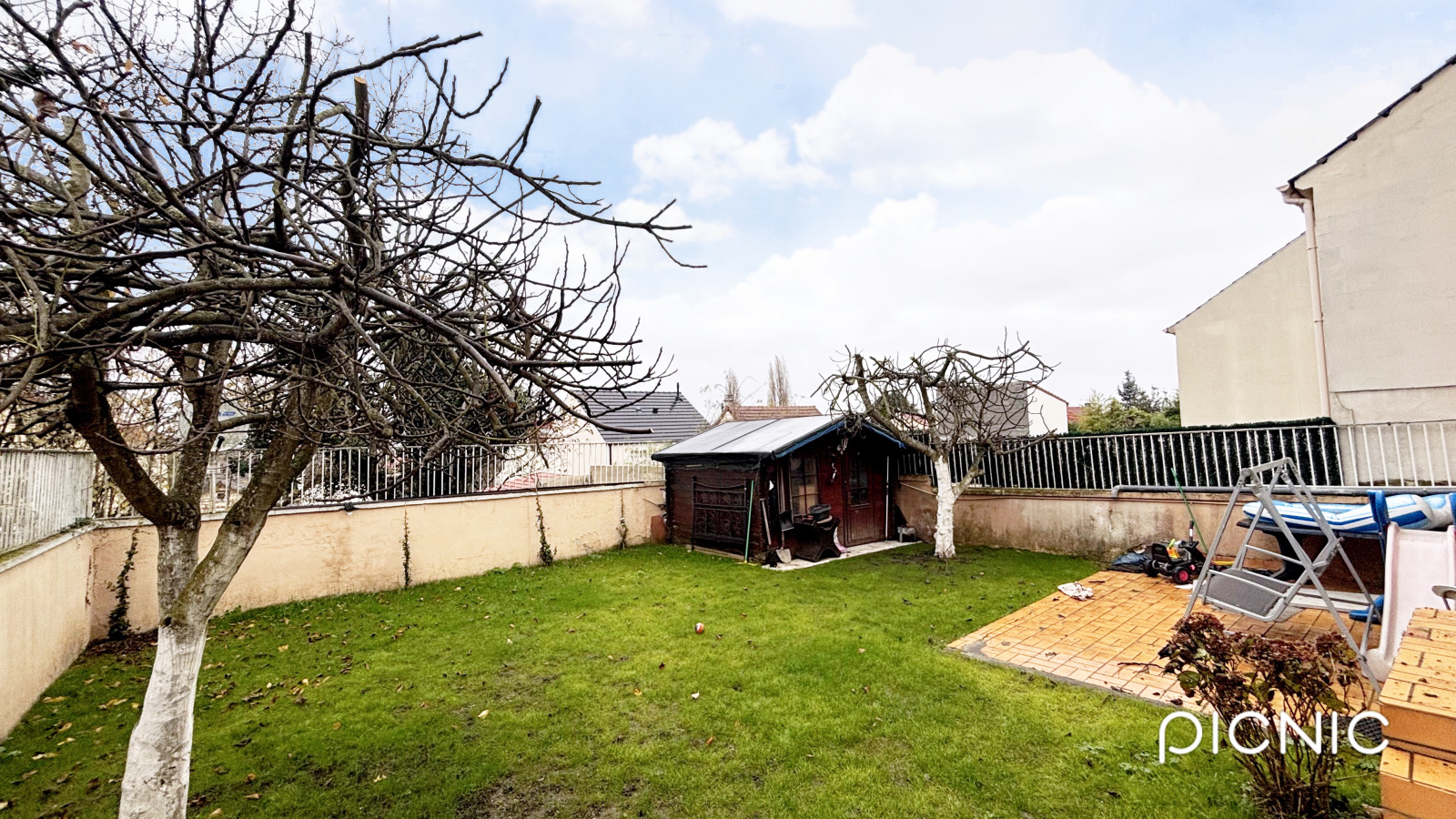 A l'arrière de la maison, un jardin clôturé, une terrasse sans vis-à-vis et une remise en bois.