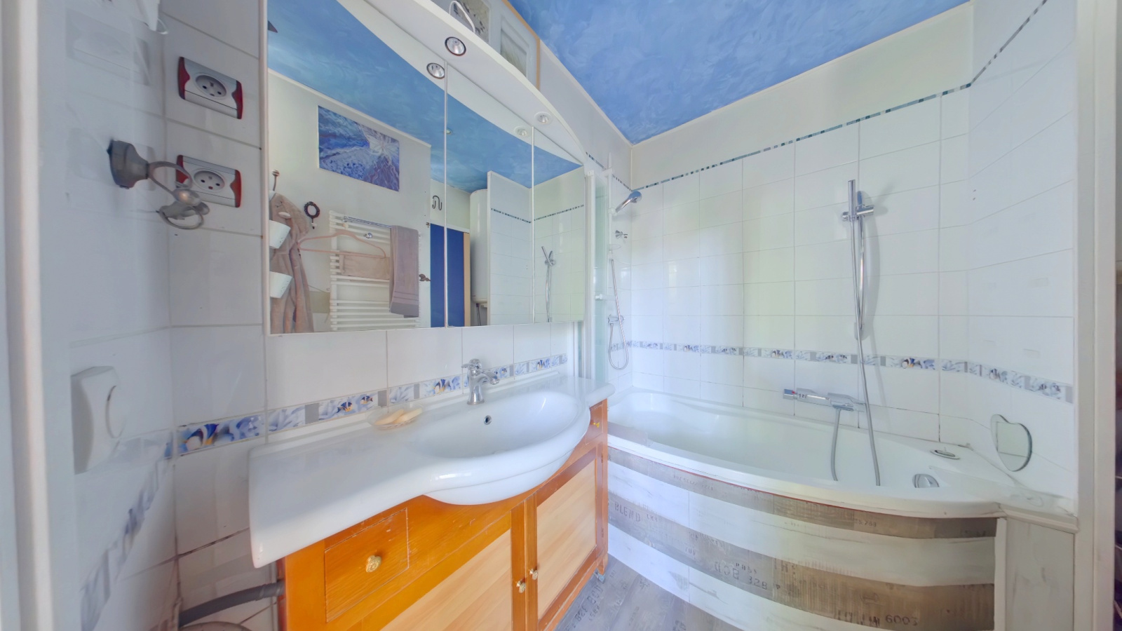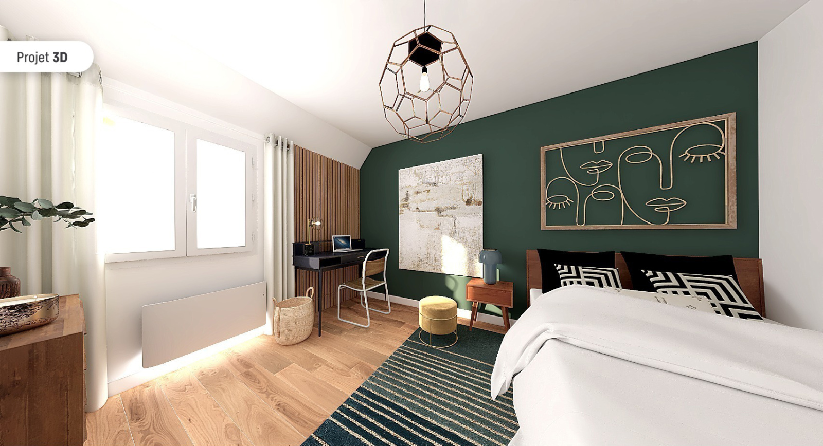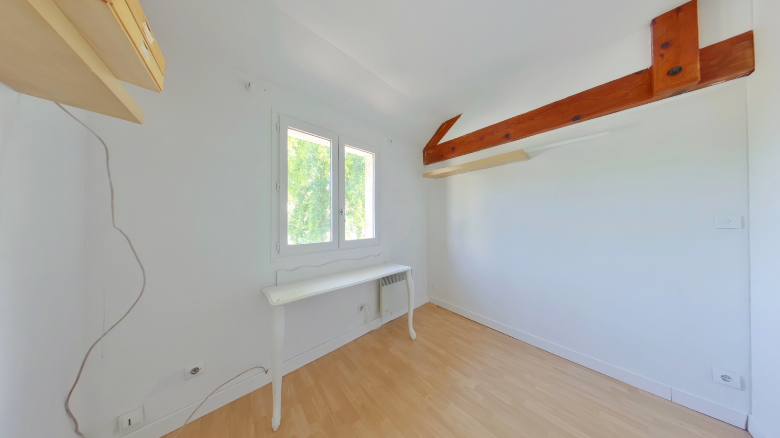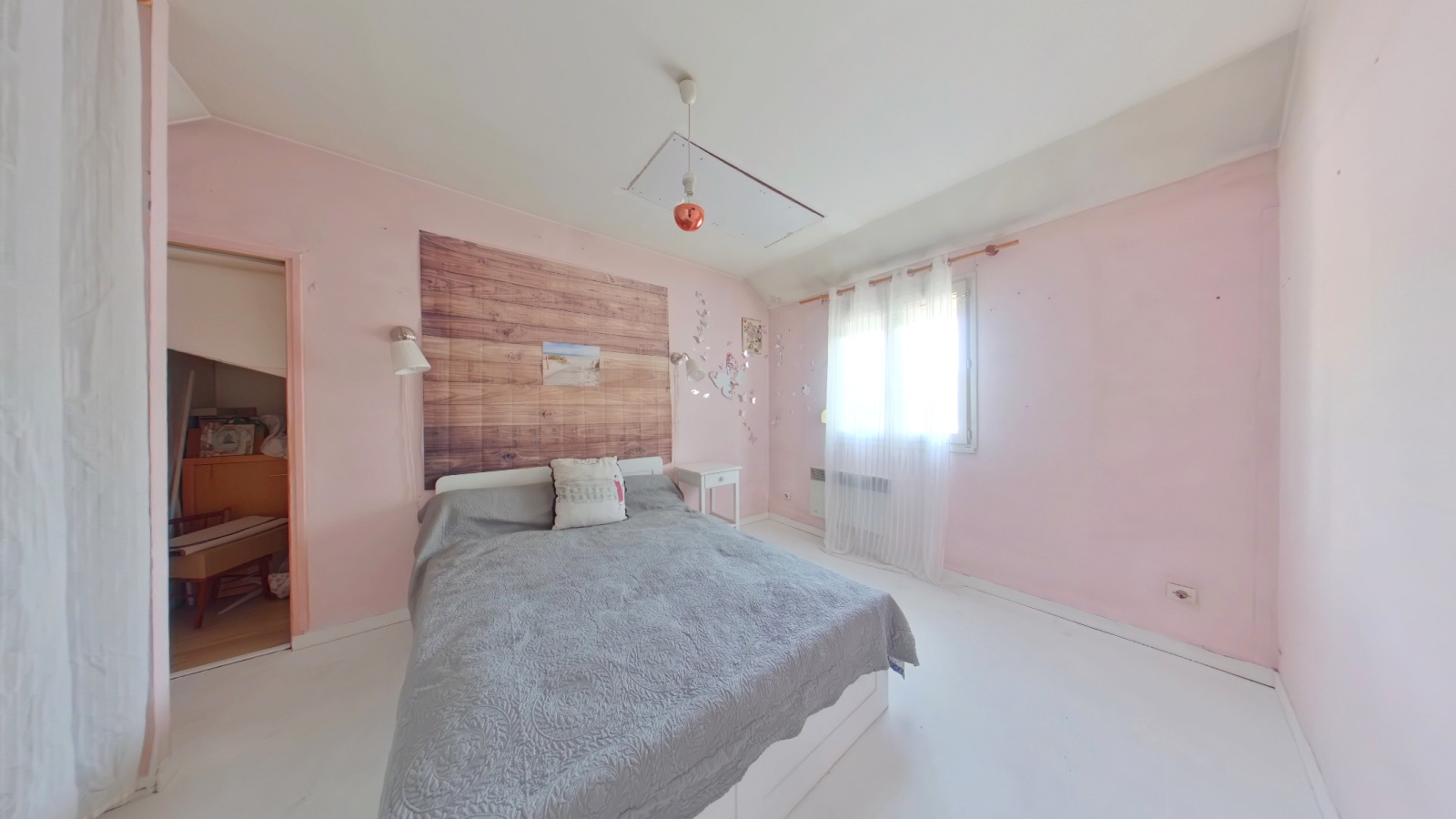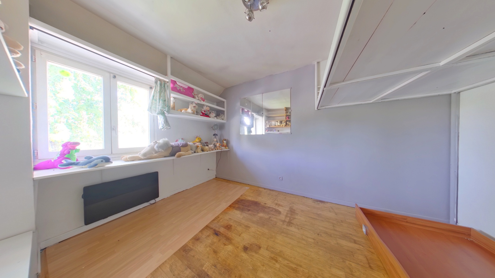 A l’étage, 2 chambres de 12m² dont une avec dressing et un bureau. Combles aménagées pour du stockage.