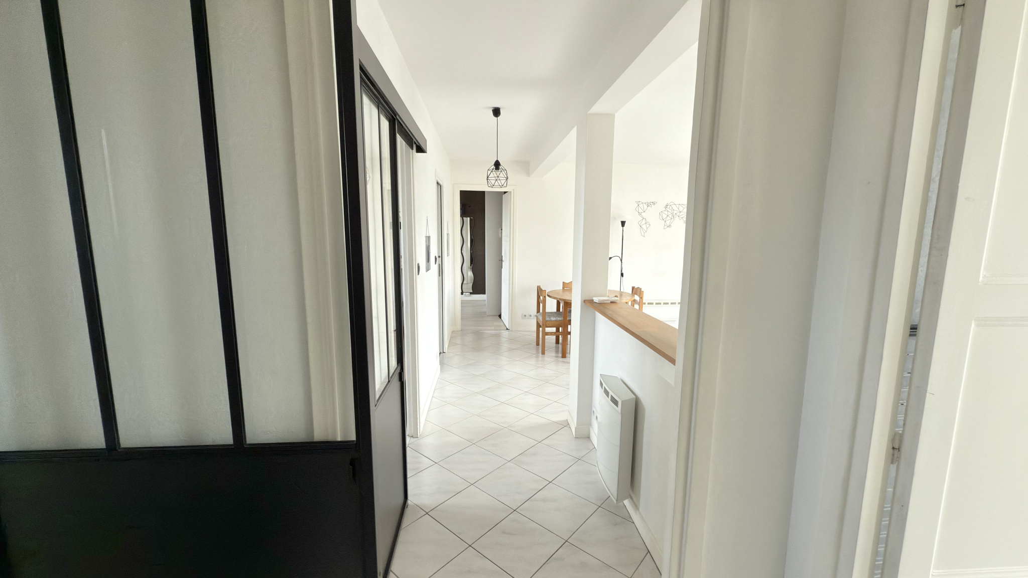 Au 3ème et dernier étage sans ascenseur, une entrée avec placard dessert un séjour lumineux de 25m2 ouvrant sur un balcon exposé Sud, ainsi qu'une cuisine qui restera entièrement aménagée et équipée.